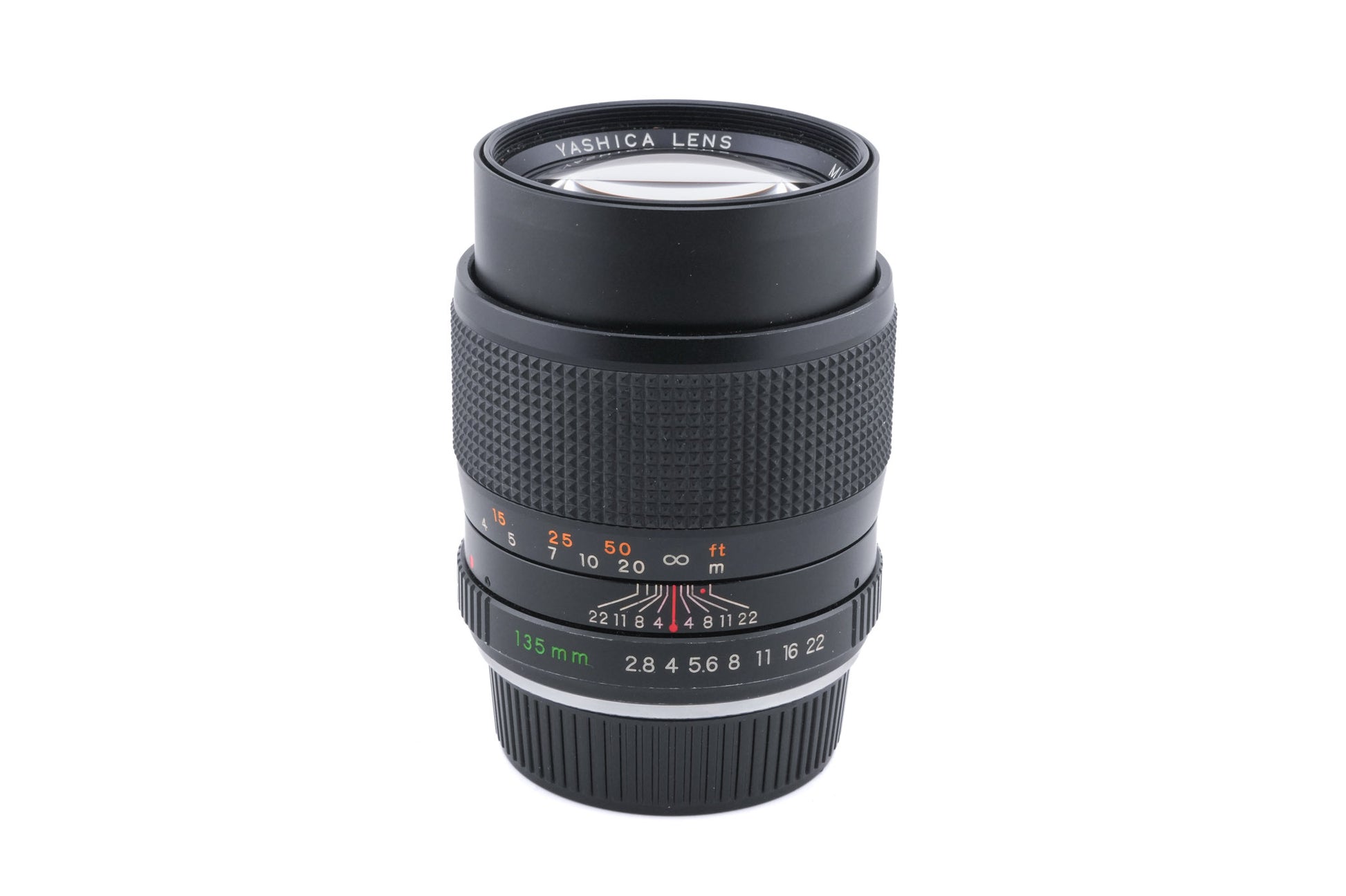 Manual focus telephoto lens made for Contax/Yashica mount 35mm SLR cameras introduced by Yashica. It has a built-in lens hood. Metal body available in black.