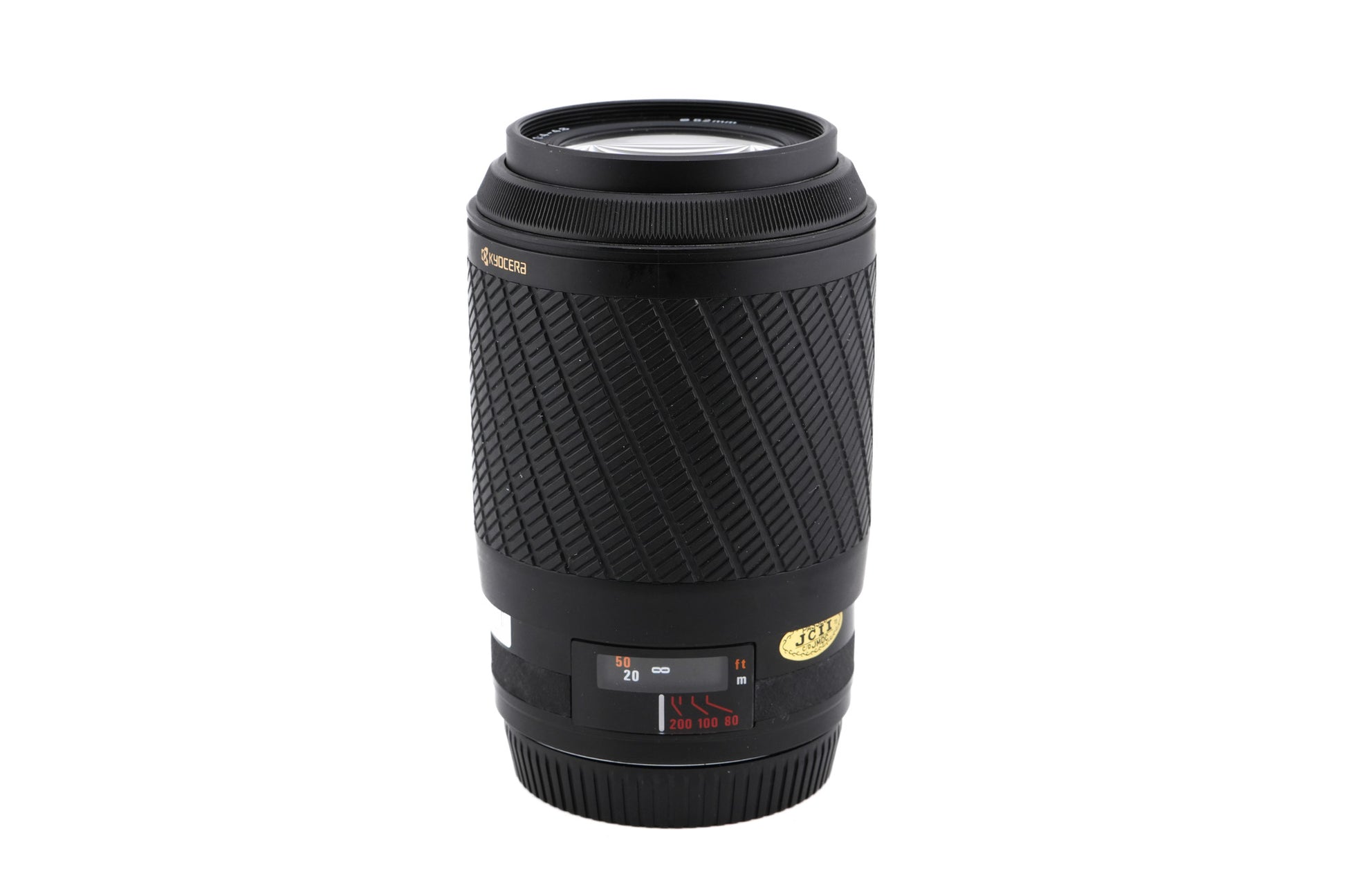 Autofocus telephoto zoom lens for Yashica AF-mount SLR cameras. The Yashica AF system were introduced in 1987 simultaneously with the Canon EOS system. Metal construction available in black.