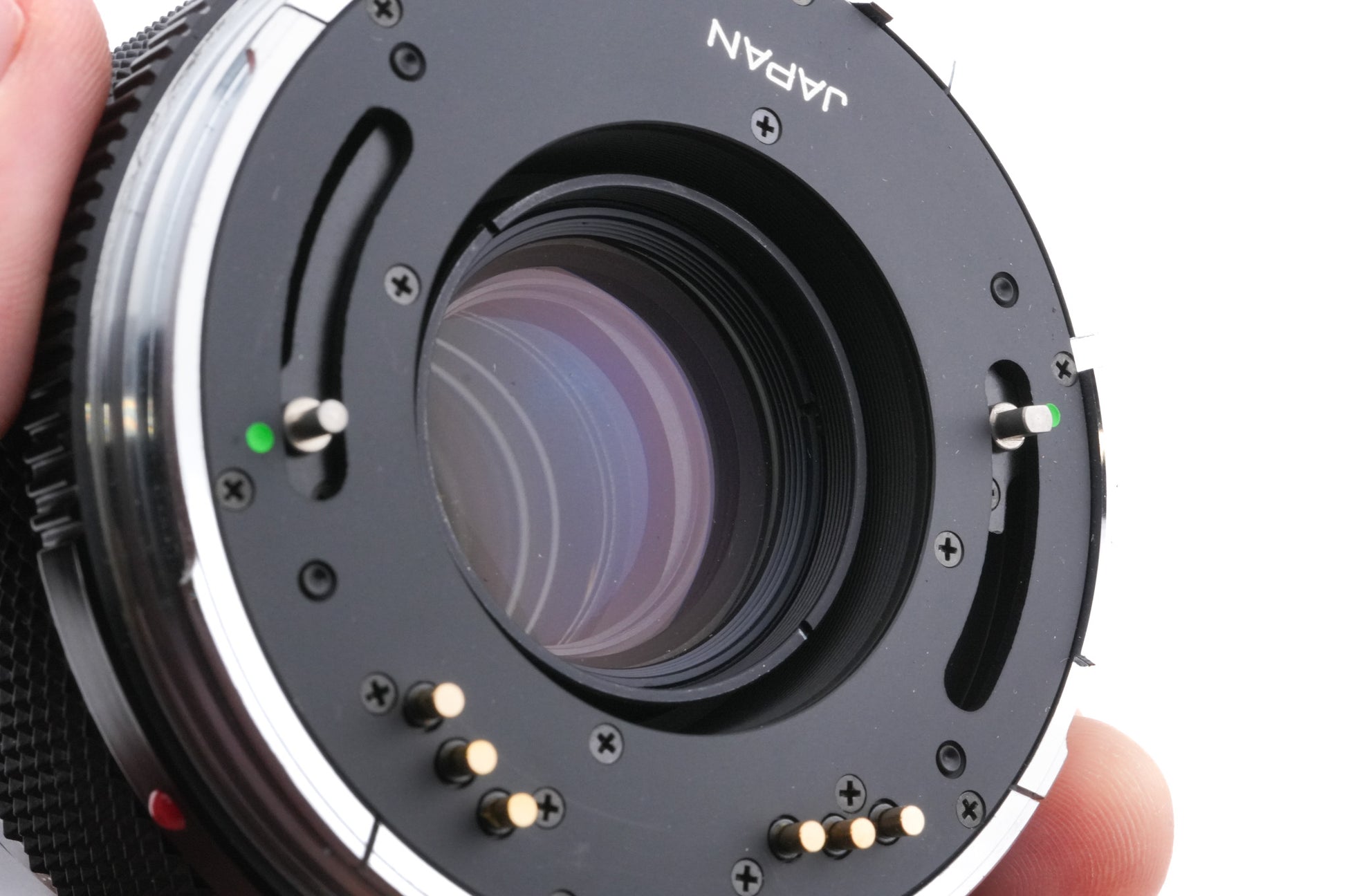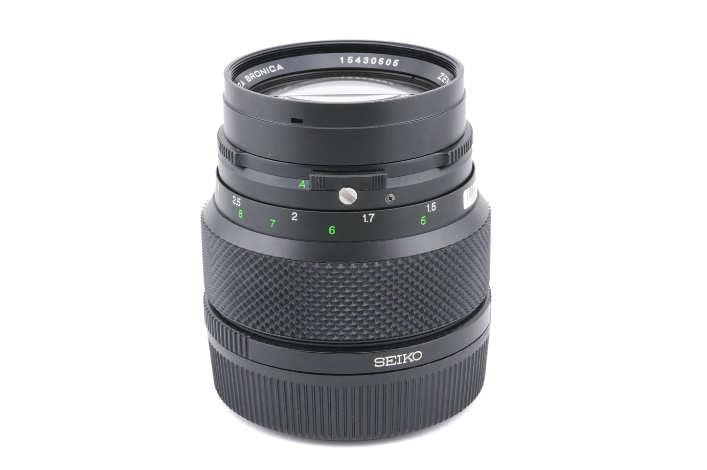 Manual focus telephoto lens made for Bronica ETR mount medium format cameras by Zenza Bronica. It has a 93mm equivalent focal length on 35mm full frame. Metal body available in black.