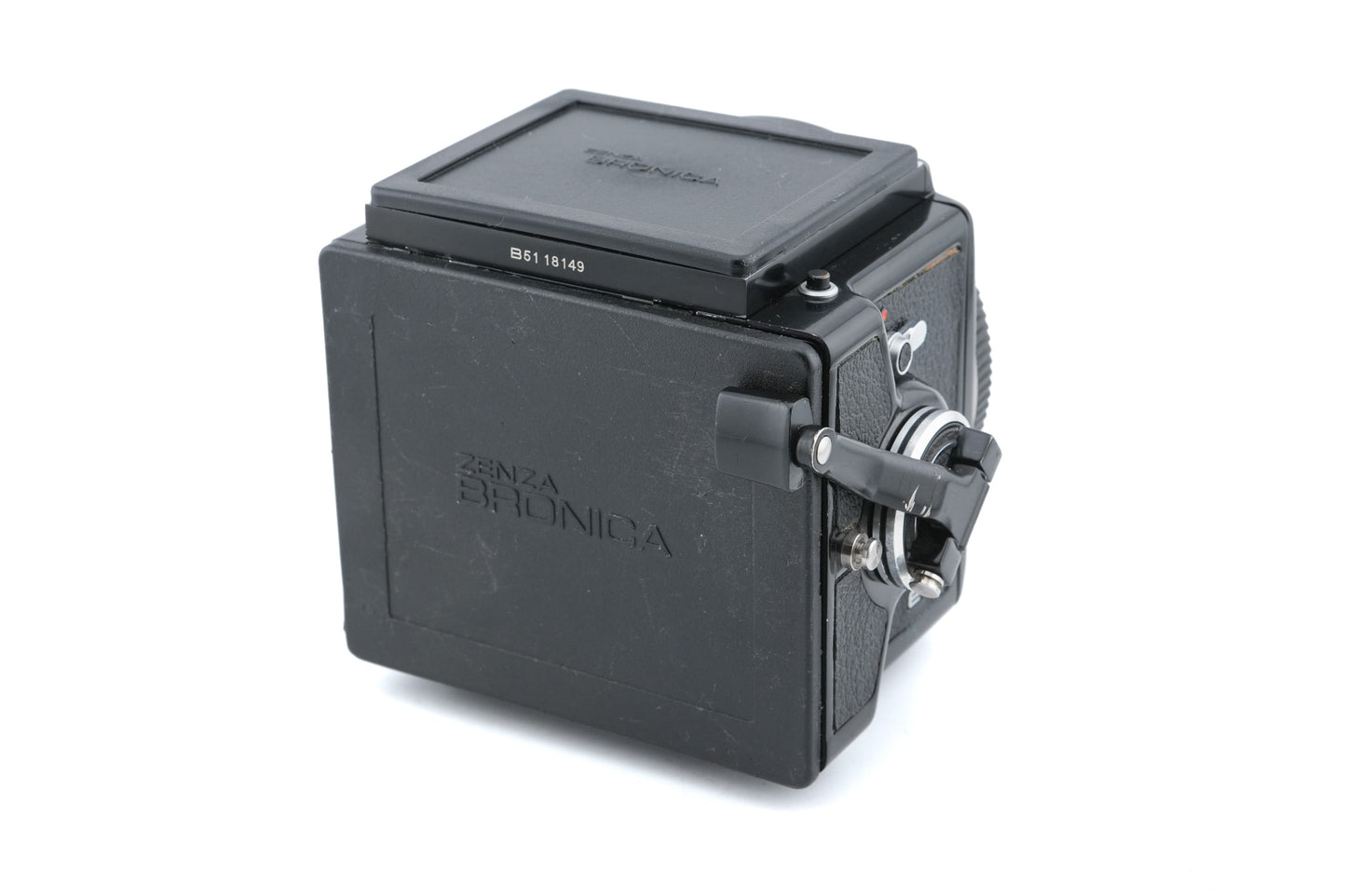Manual focus 6x4.5 medium format SLR camera made by Zenza Bronica. Metal body available in black.