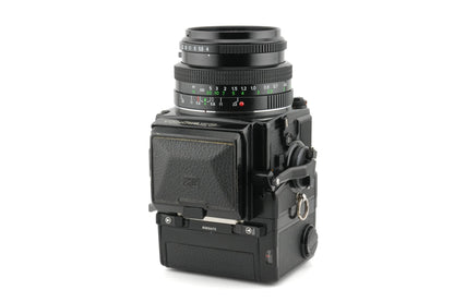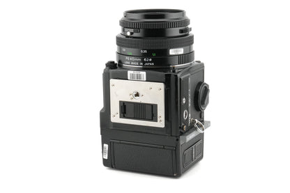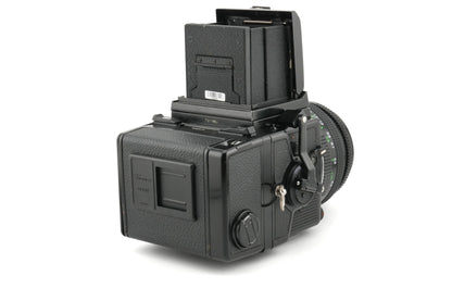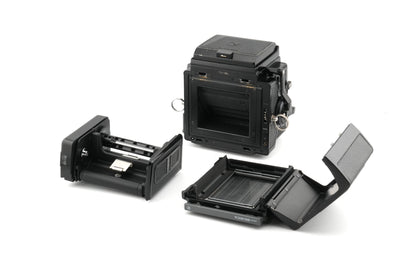 Like the Hasselblad V system, these offer interchangeable film backs, viewfinders, focusing screens, lenses and various accessories like grips. There are also several versions of the body.
