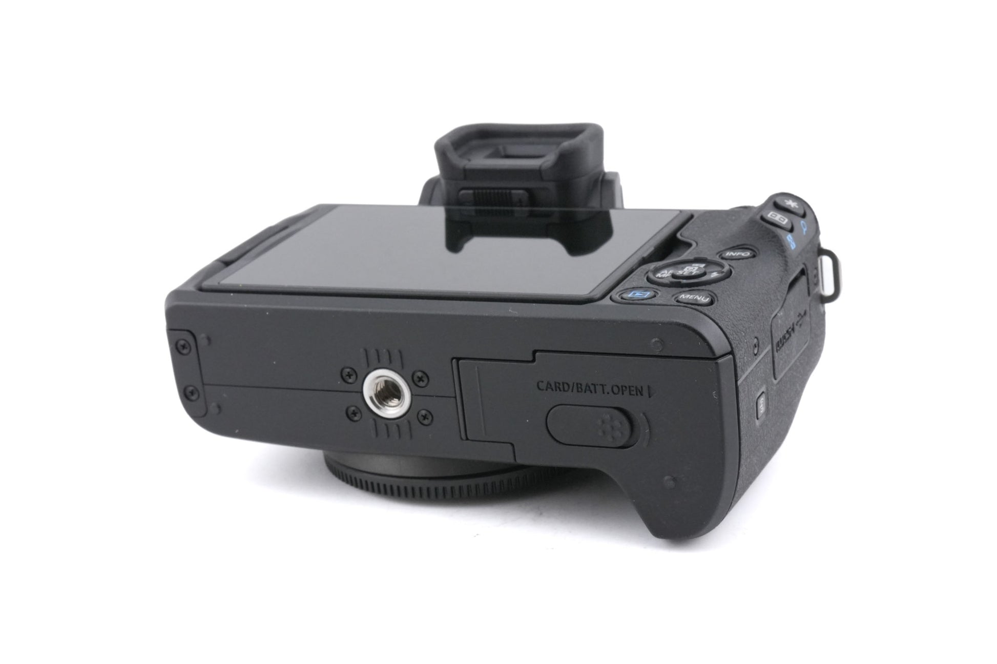 Autofocus EF-M-mount digital mirrorless camera released by Canon in 2018. It has a fully articulating rear touch screen and an OLED electronic viewfinder. It can record 4K video. Plastic body available in black & white.