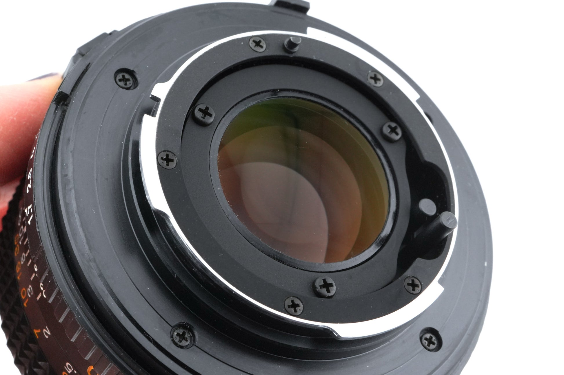Manual focus normal lens made for MD/SR mount 35mm SLRs made by Minolta. This lens is from the later MD range, supporting advanced metering modes and fully-programmed exposure. Metal body available in black.