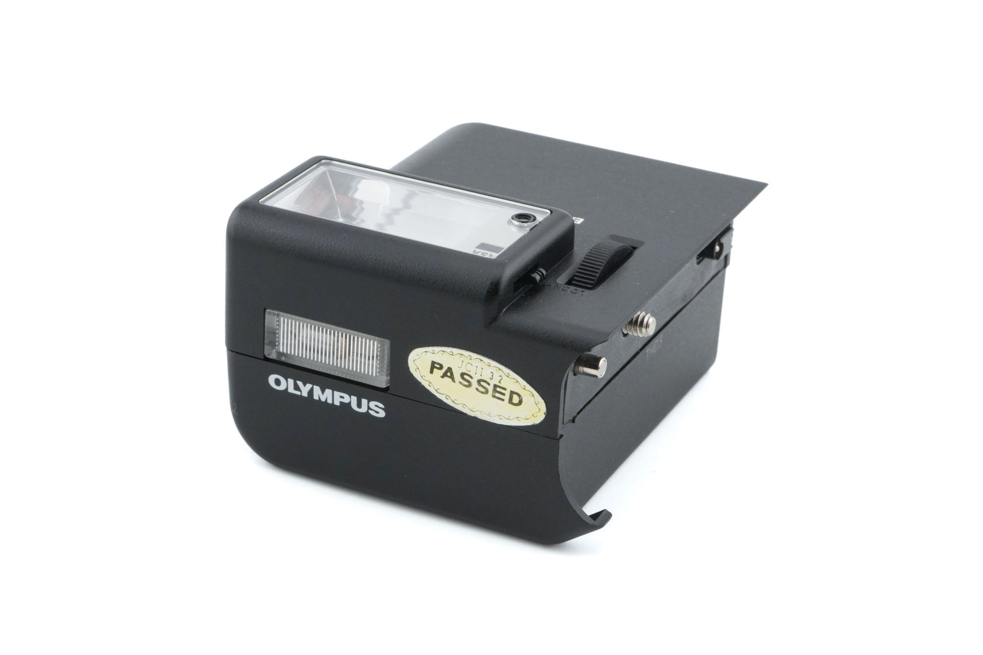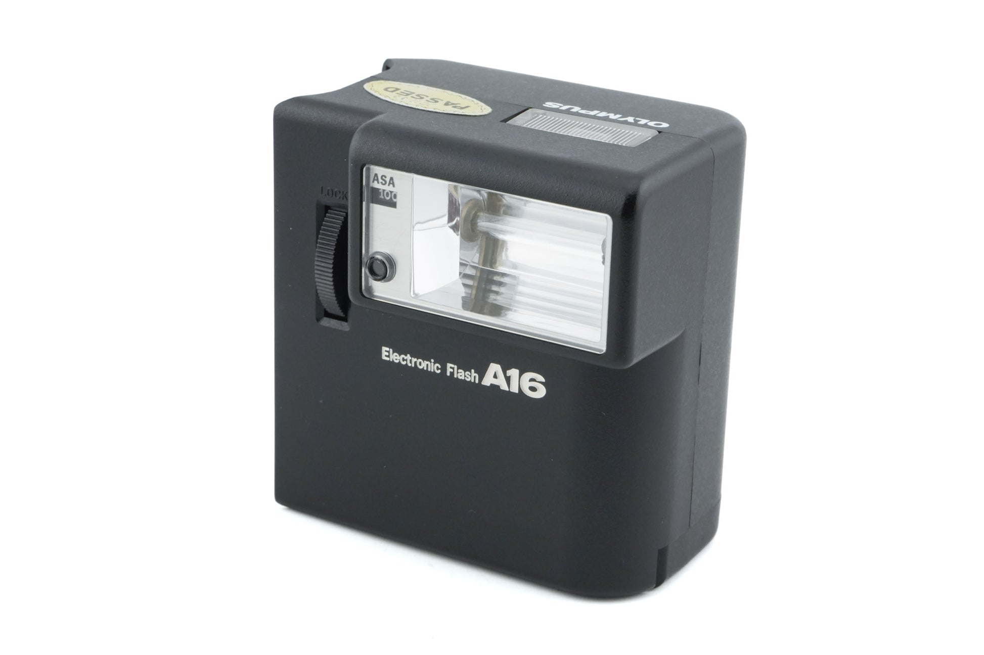 Electronic flash made for the Olympus XA series of cameras made by Olympus. A more powerful version of the more common A11 flash. It also uses two AA batteries instead of one. Plastic body available in black.