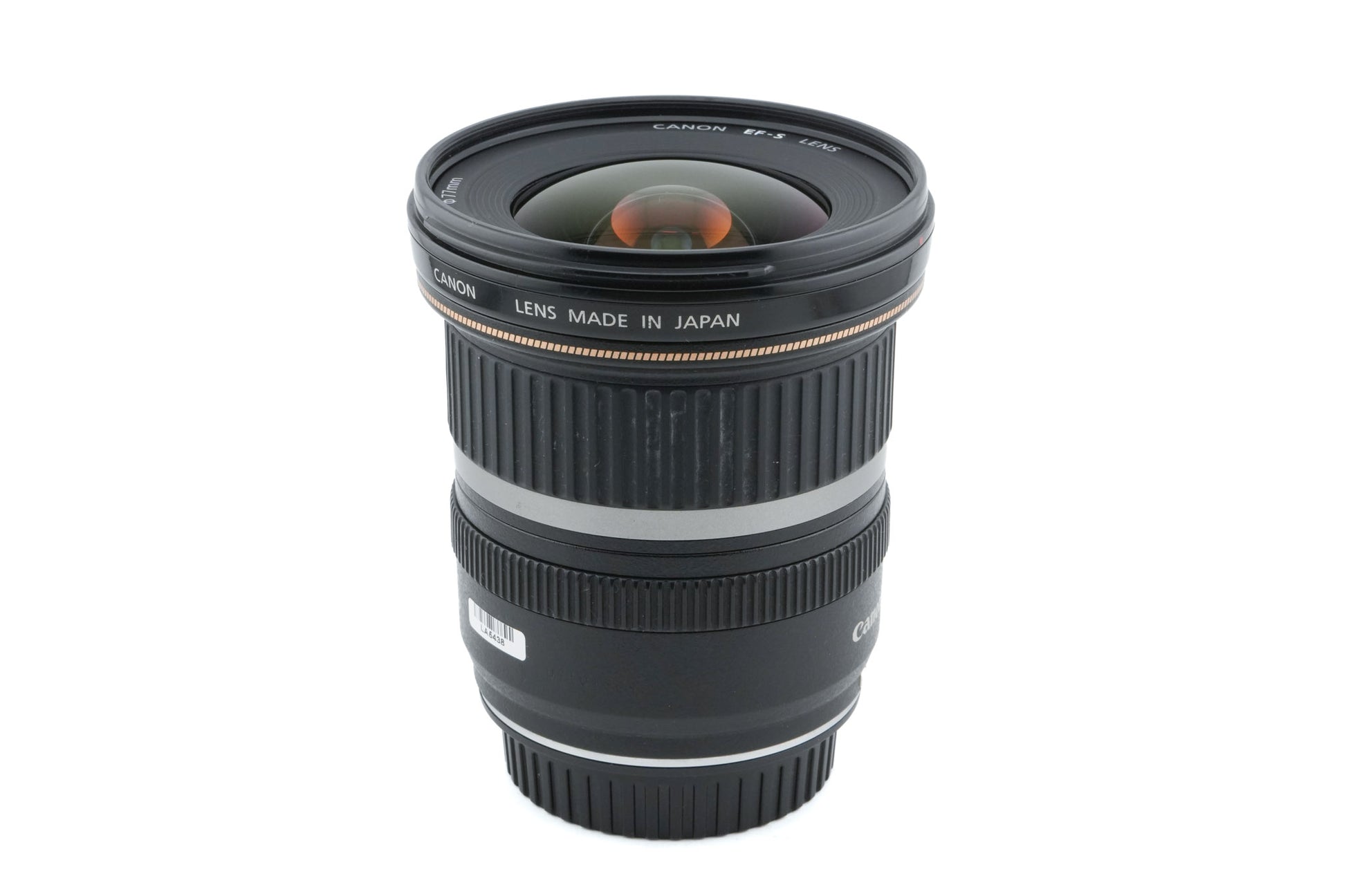 Autofocus wide-angle zoom lens made for EF-S-mount digital SLRs by Canon in 2005. It is designed for APS-C-sized sensors and gives the equivalent field of view to a 15-33mm lens on full frame/35mm. It uses an ultrasonic focusing motor (USM) for autofocus. Plastic and metal body available in black.