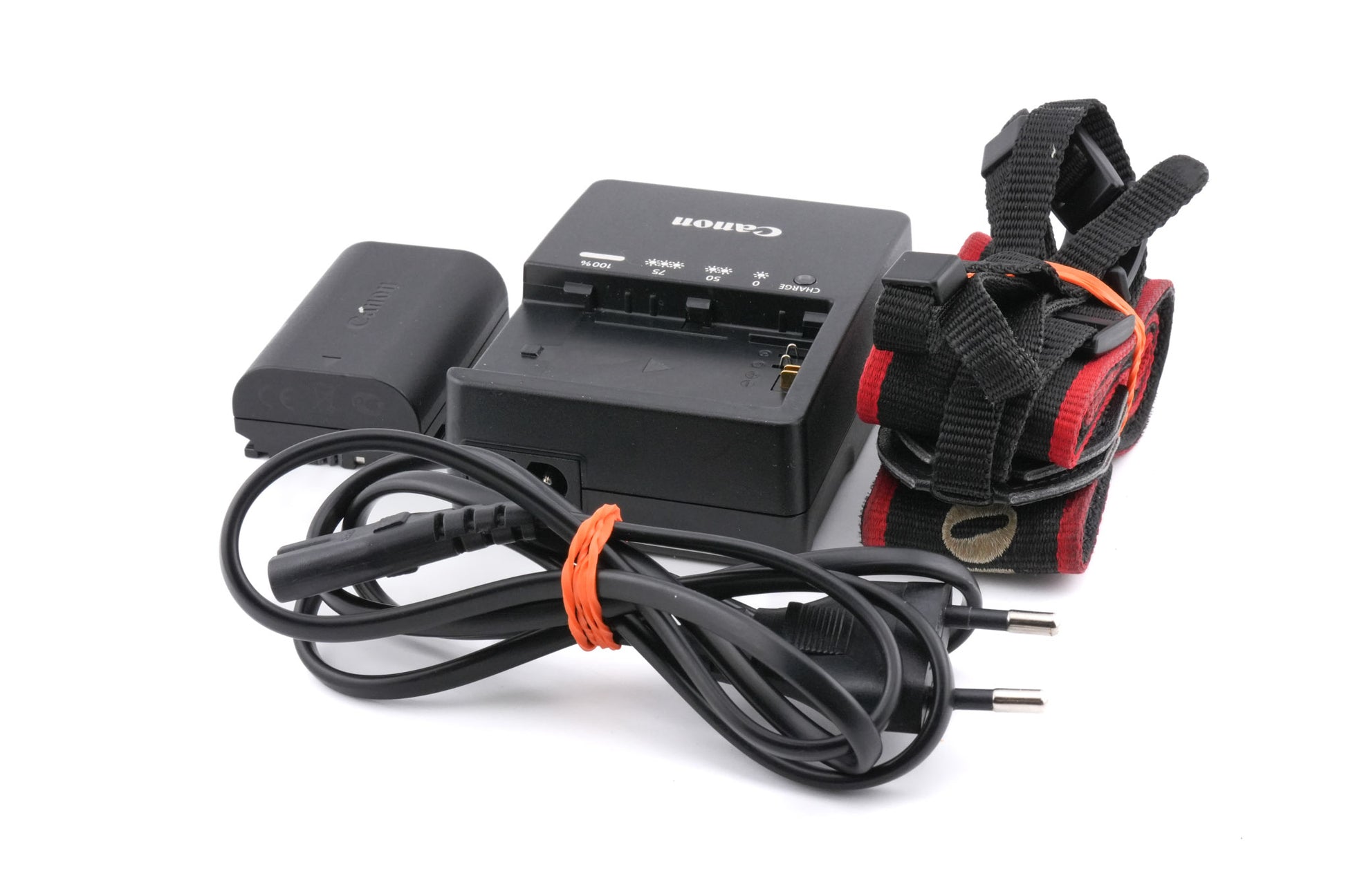 Autofocus full-frame EF-mount DSLR camera released by Canon in 2012. The (WG) model has WiFi and GPS functions. Features 11-point autofocus and full HD video capability. Metal and plastic body in black.