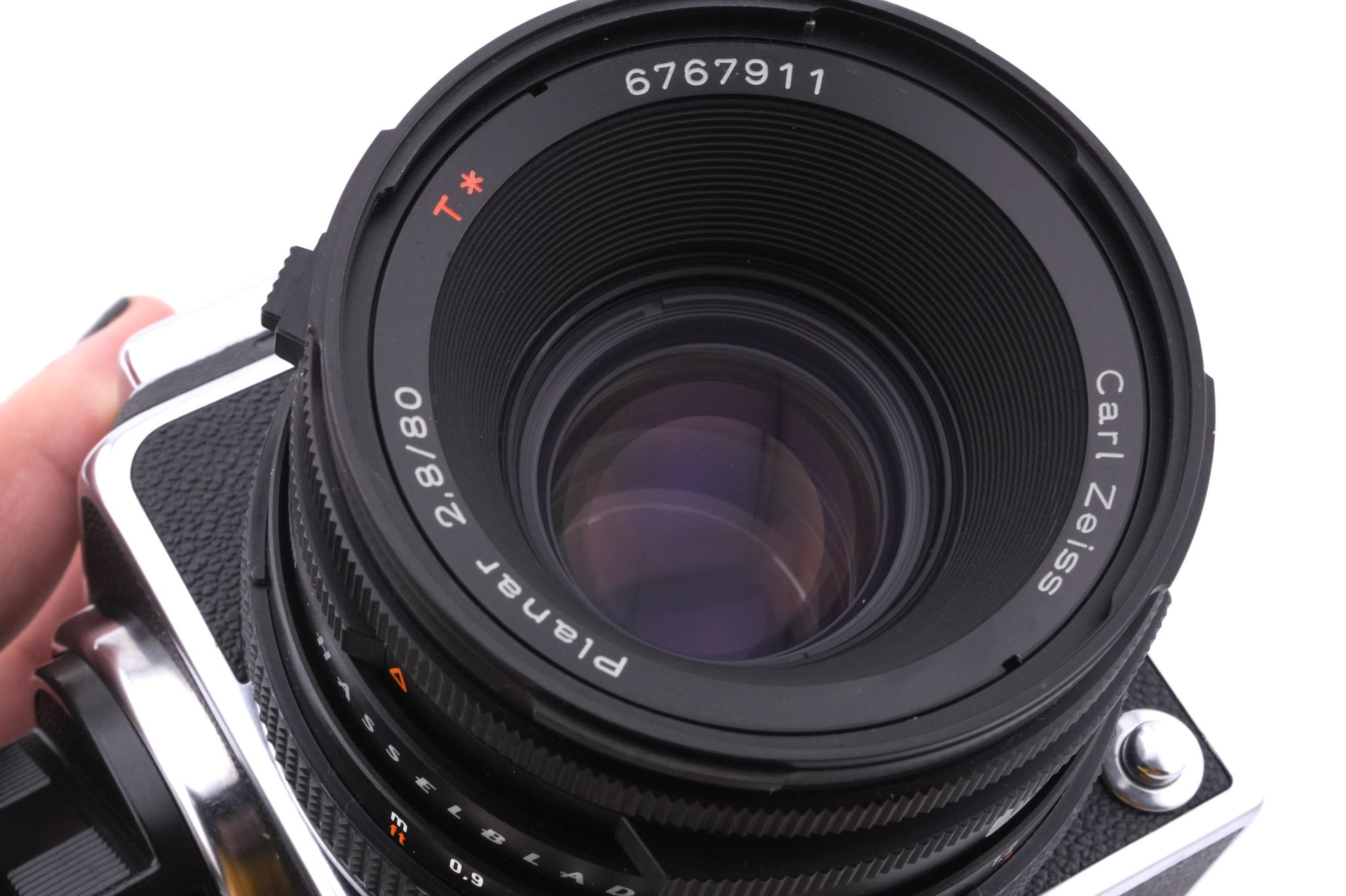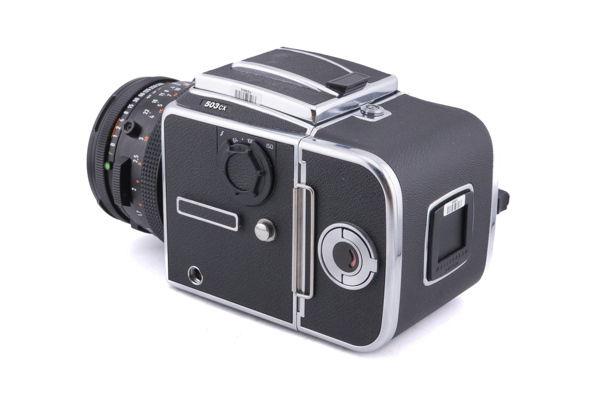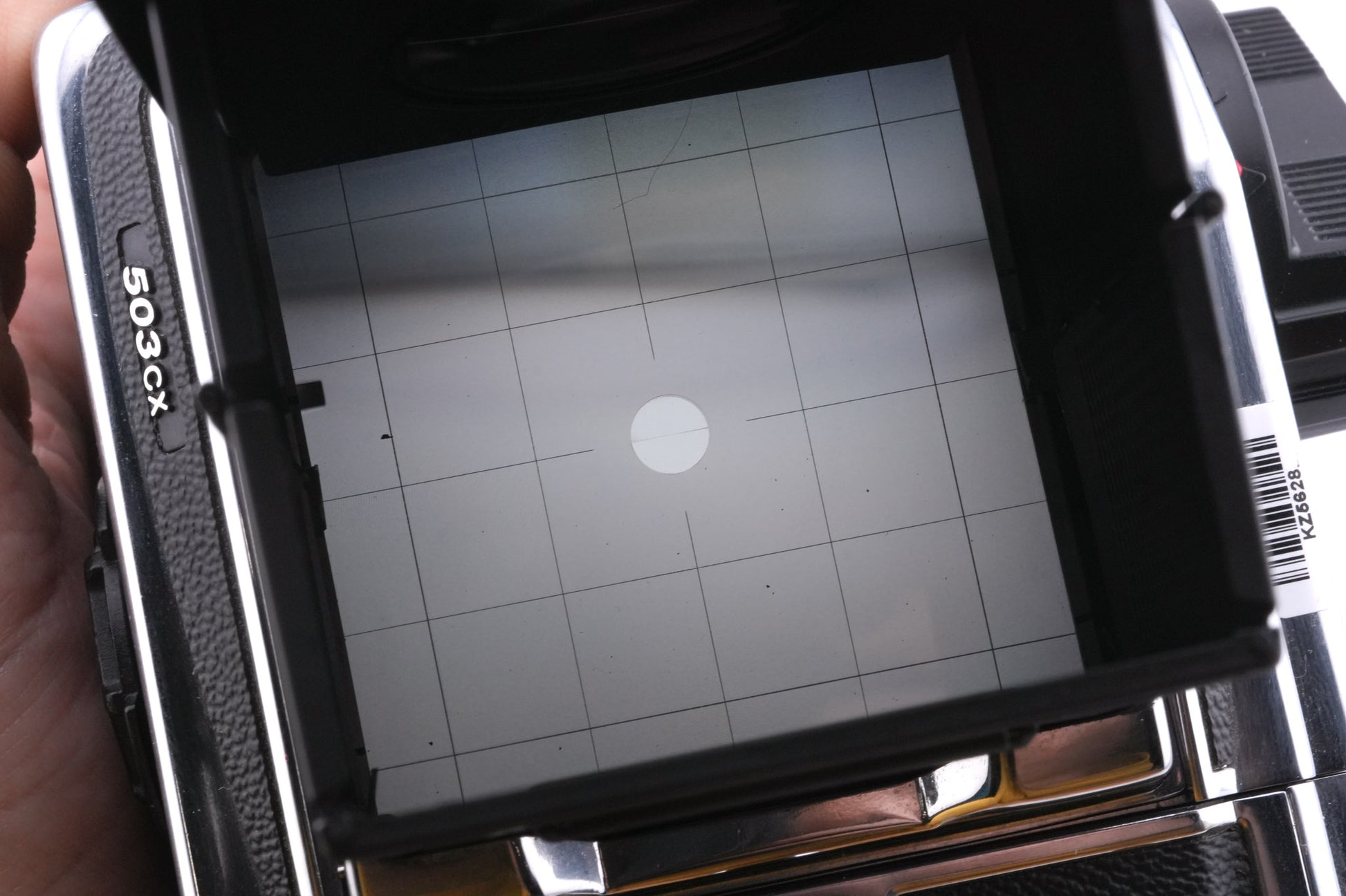 Hasselblad 503CX (10026 / 10172) + Waist Level Finder (New / Chrome, 42315) + 80mm f2.8 Planar T* CF (20029) + A12N Film Magazine + Acute Matte Grid / Split Image Focusing Screen (42170)