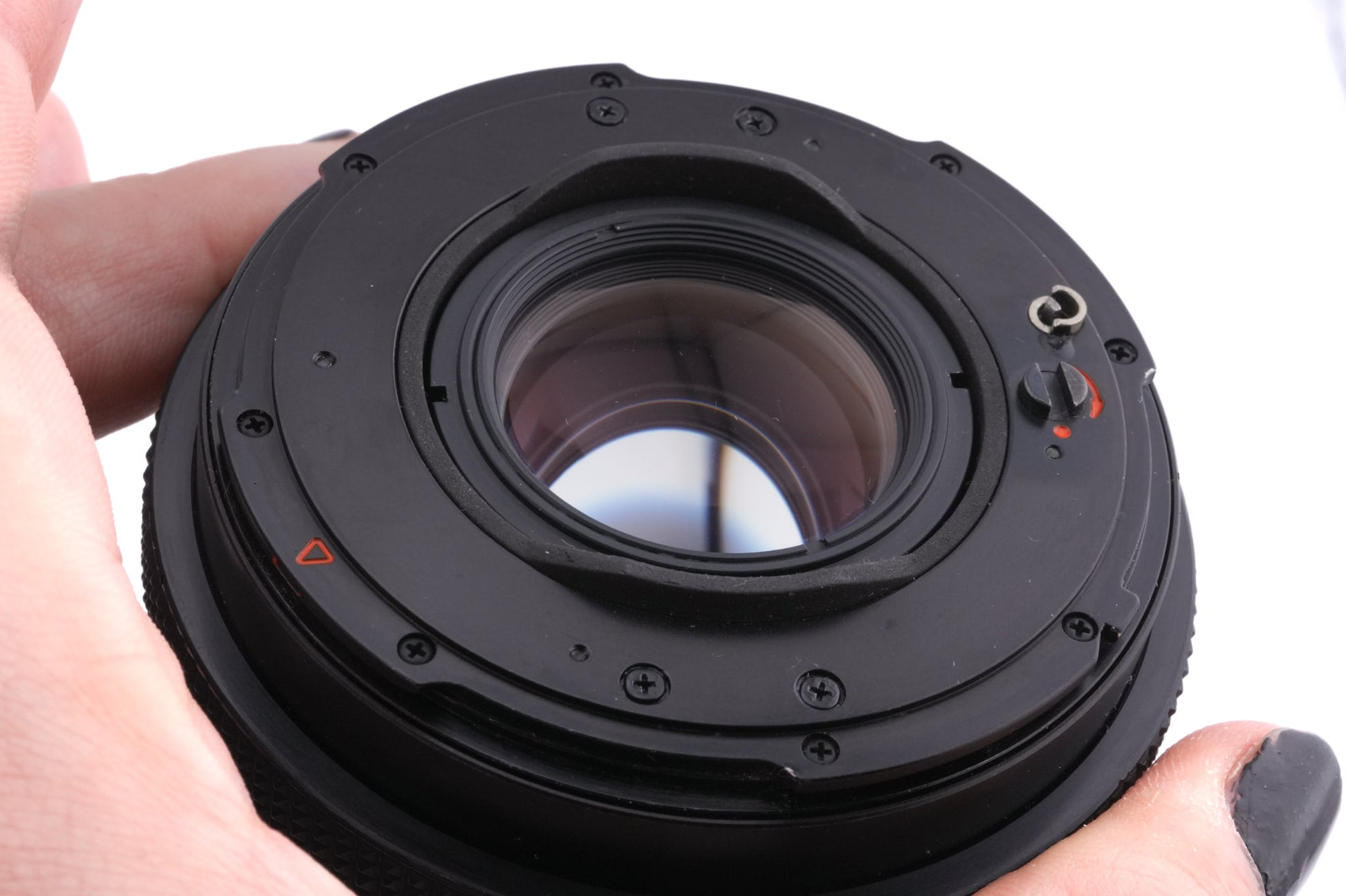 Manual focus normal lens made for Hasselblad V system medium format SLR cameras by Carl Zeiss starting in 1982. It gives the equivalent field of view to a 44mm lens on full frame/35mm and has Carl Zeiss' T* coatings. Metal body available in black.