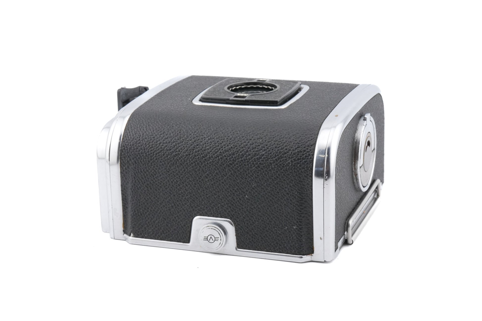 120 film magazine released for V system 120 SLRs by Hasselblad in 1968. This design improved over the previous C12 magazine by adding a winding crank to improve loading speed and an automatic system for stopping at the first frame. The back window was also removed. Exposes 12 6x6 frames on one roll of 120 film. Originally chrome, but became available in black in 1973.