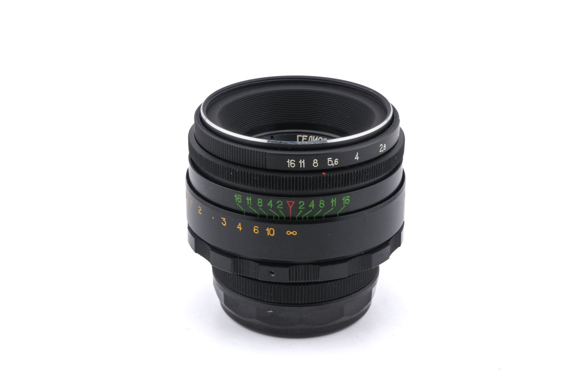 Manual focus normal lens made for M42 mount 35mm SLR cameras in the former Soviet Union. The lens is an optical copy of the Carl Zeiss 58mm f2 Biotar. Metal body available in black.
