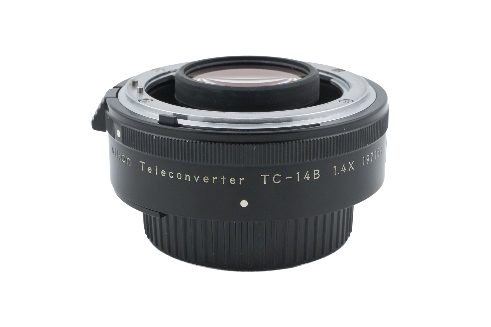 Nikon 1.4x teleconverter, usable with lenses over 135mm in focal length. For shorter focal lengths Nikon designed the TC-14A. Reduces the lens speed by one stop. Metal construction in black finish.