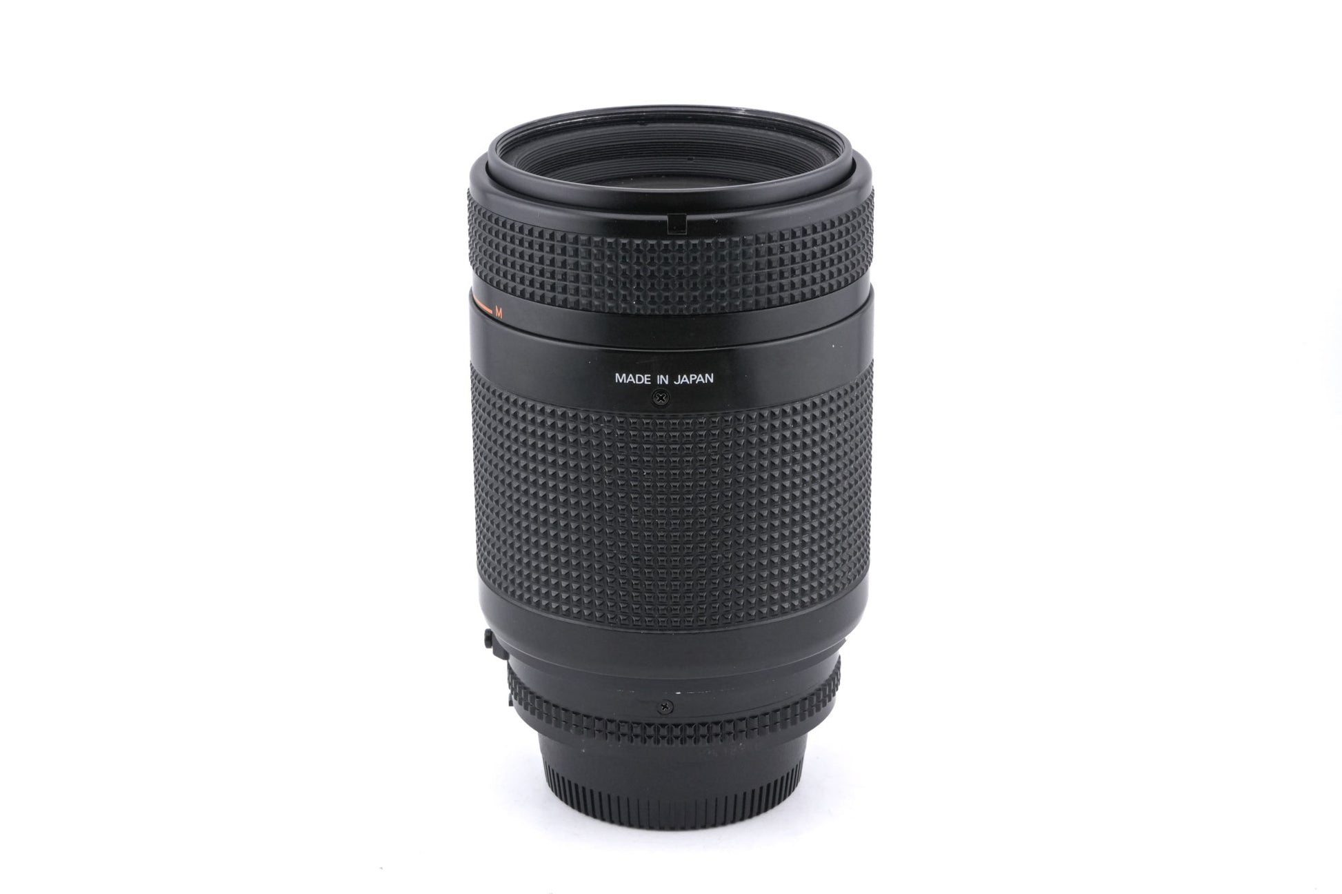 Autofocus telephoto zoom lens made for F-mount SLRs by Nikon starting in 1999. It requires a body with a built-in screw focus motor for autofocus. This lens has the same optical formula as the later AF-D model, but this lens does not communicate focus distance to the camera. Plastic and metal body available in black.