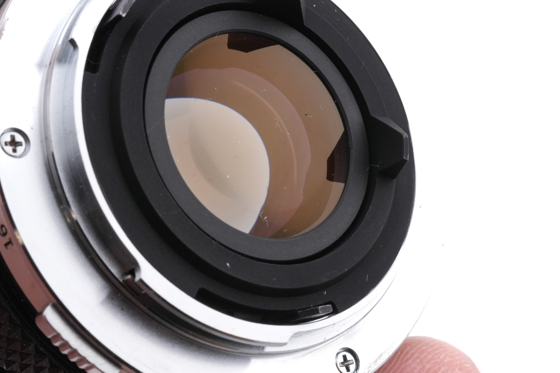 Manual focus normal lens made for OM-mount 35mm SLR cameras introduced by Olympus. It has its own aperture stop-down button and multi-coating. Metal body available in black.