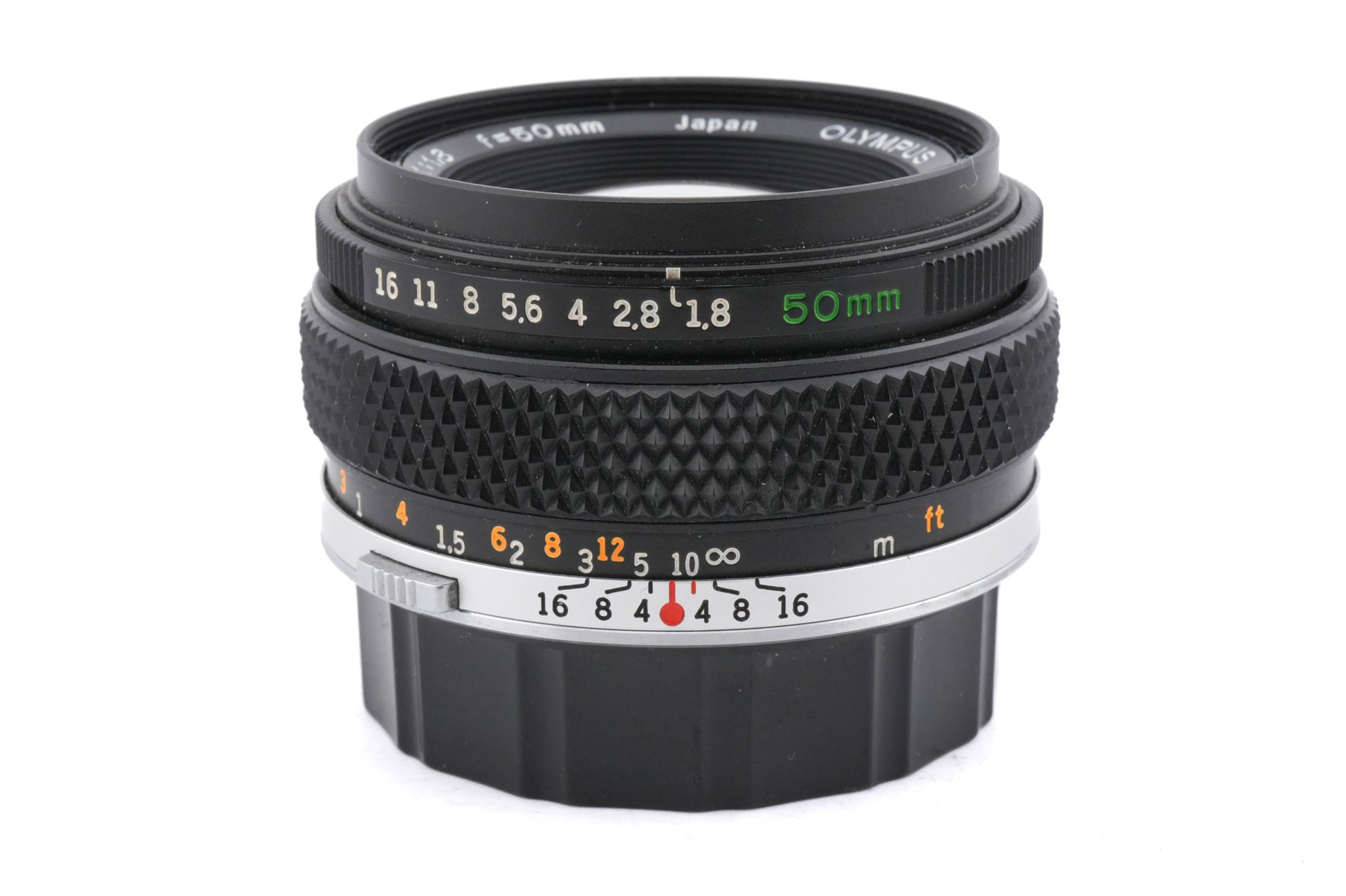 Manual focus normal lens made for OM-mount 35mm SLR cameras introduced by Olympus. It has its own aperture stop-down button and multi-coating. Metal body available in black.