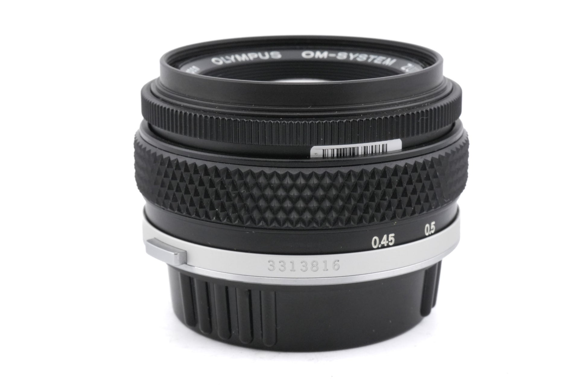 Manual focus normal lens made for OM-mount 35mm SLR cameras introduced by Olympus. It has its own aperture stop-down button and multi-coating. Metal body available in black.