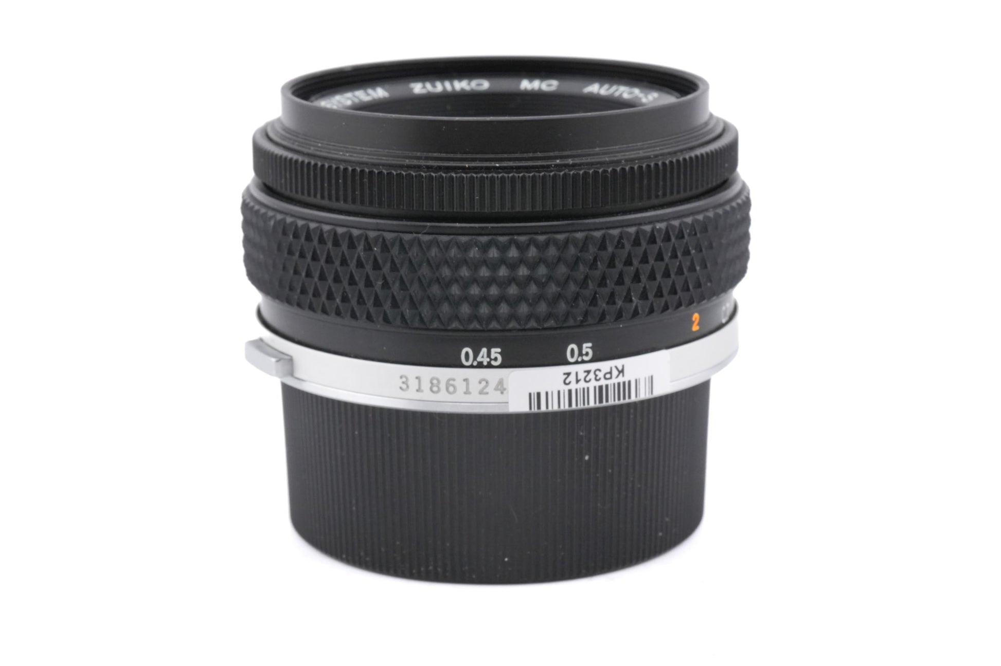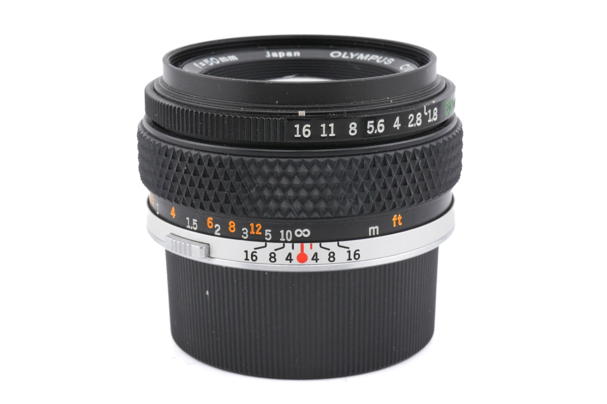 Manual focus normal lens made for OM-mount 35mm SLR cameras introduced by Olympus. It has its own aperture stop-down button and multi-coating. Metal body available in black.