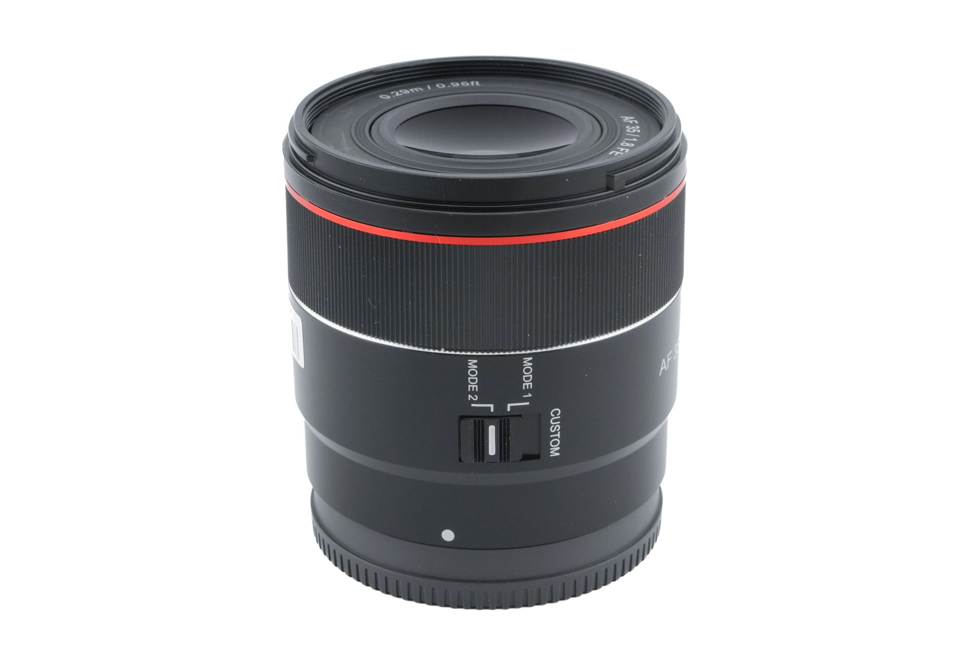 Autofocus normal lens made for FE-mount mirrorless cameras by Samyang. Metal and plastic body available in black.