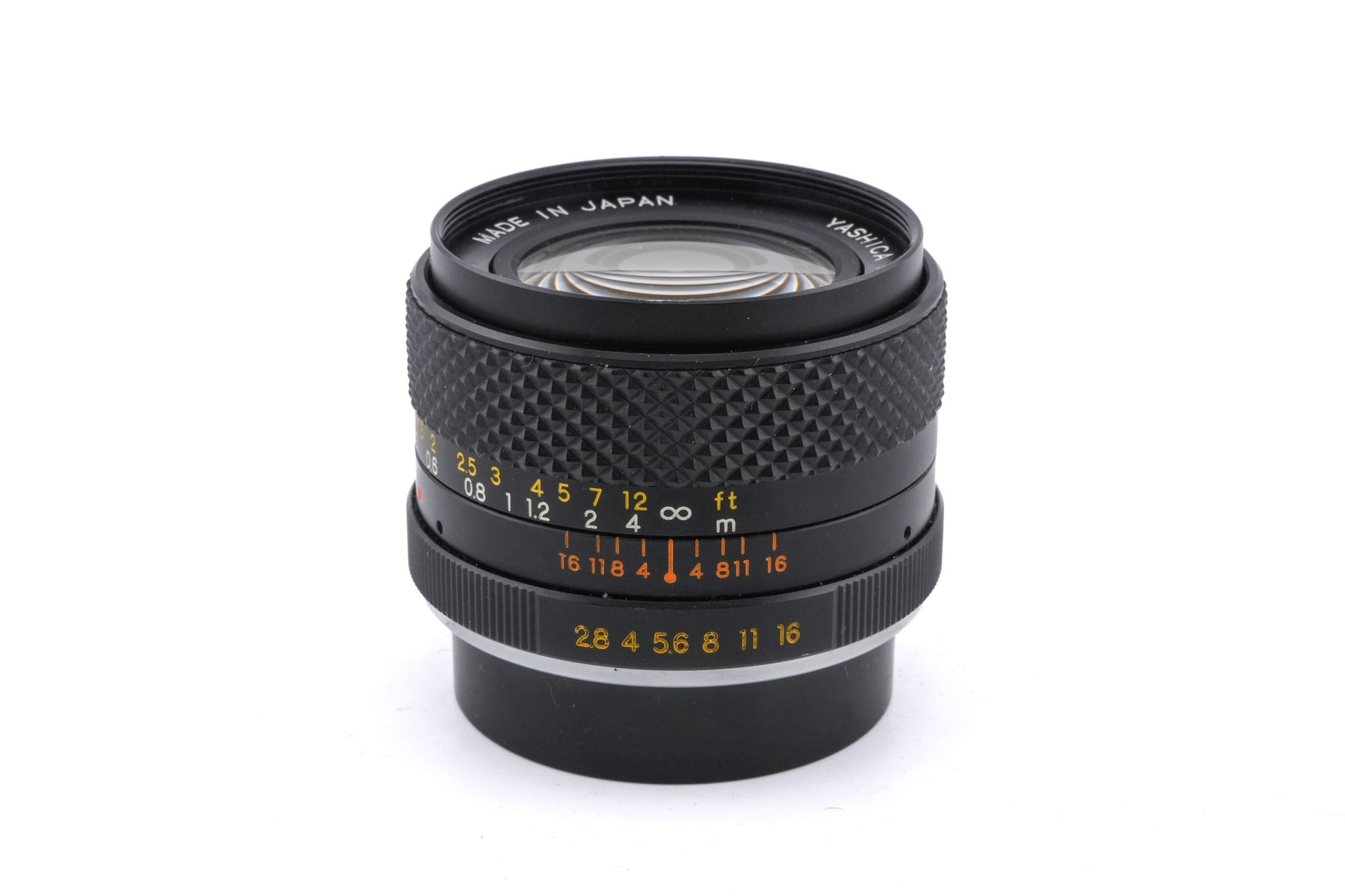 Manual focus wide-angle lens made for Contax/Yashica mount 35mm SLRs by Yashica. DSB lenses are single-coated. Metal body available in black.
