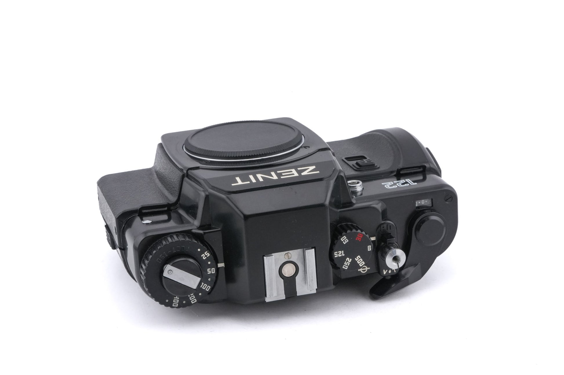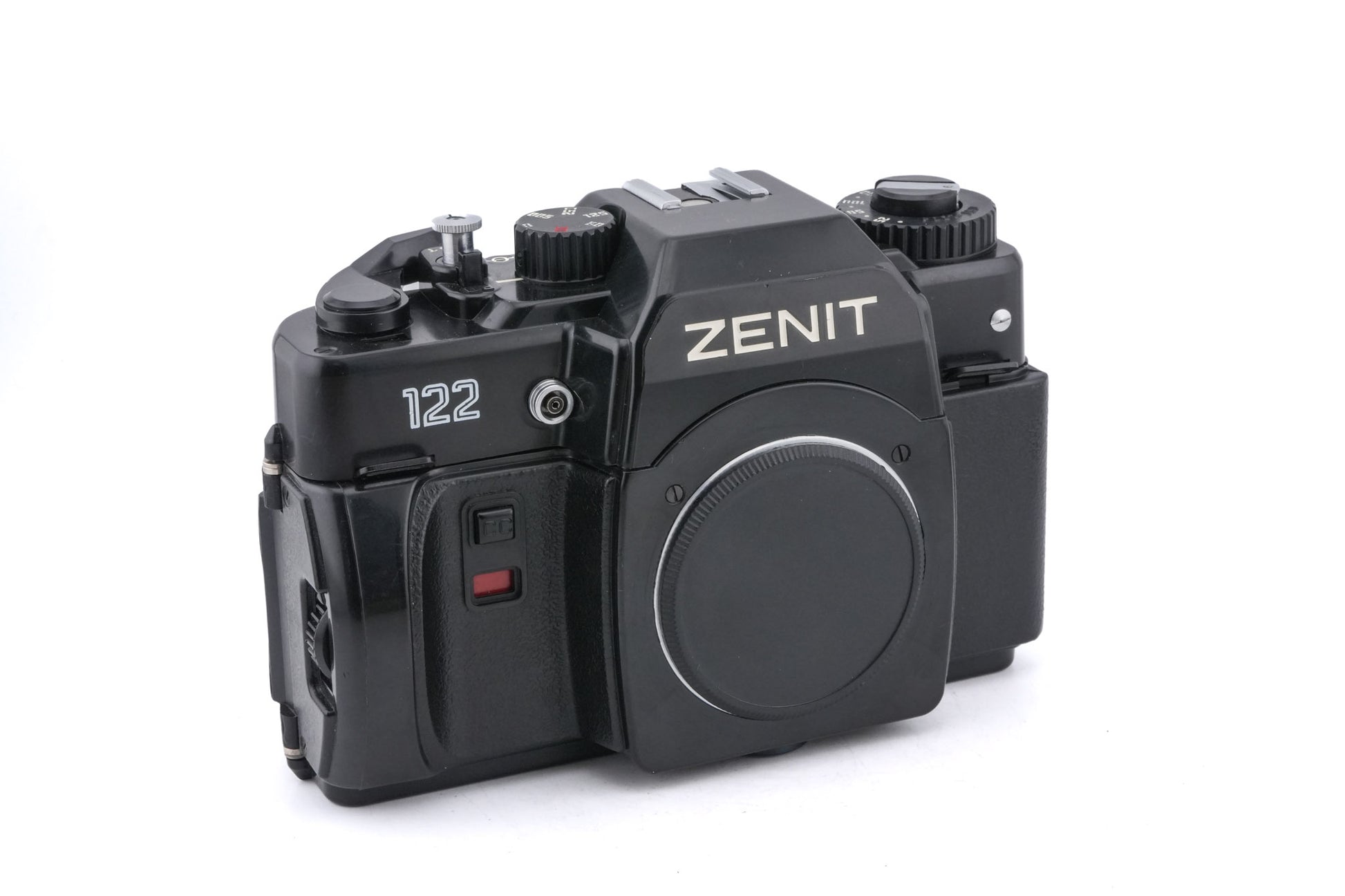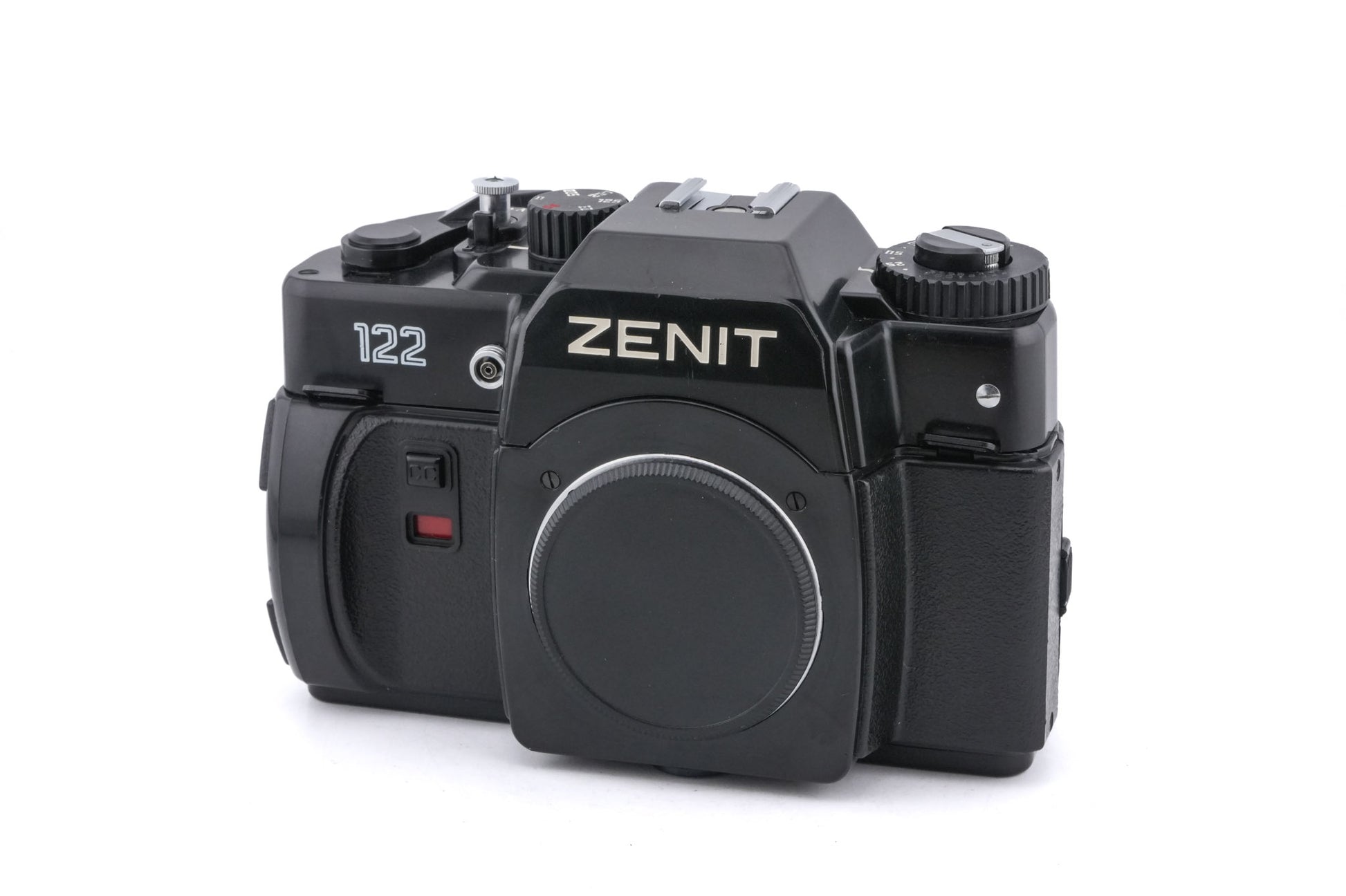 Manual focus 35mm M42 mount mechanical SLR camera made by introduced by Zenit in 1990. It has TTL metering with LEDs in the viewfinder. Plastic body available in black.