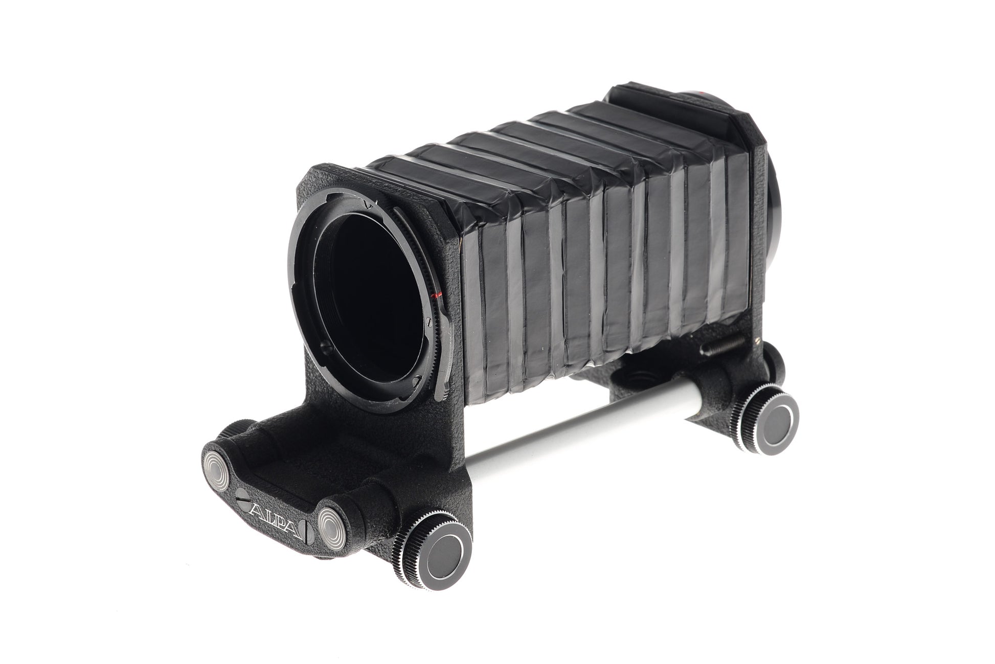 Macro bellows for SLRs using Alpa's own mount. Max extension ~10cm.