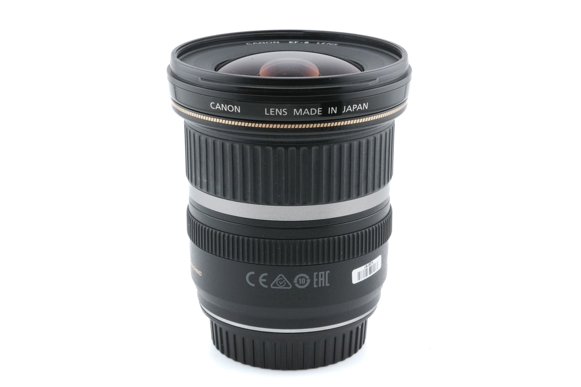 Autofocus wide-angle zoom lens made for EF-S-mount digital SLRs by Canon in 2005. It is designed for APS-C-sized sensors and gives the equivalent field of view to a 15-33mm lens on full frame/35mm. It uses an ultrasonic focusing motor (USM) for autofocus. Plastic and metal body available in black.