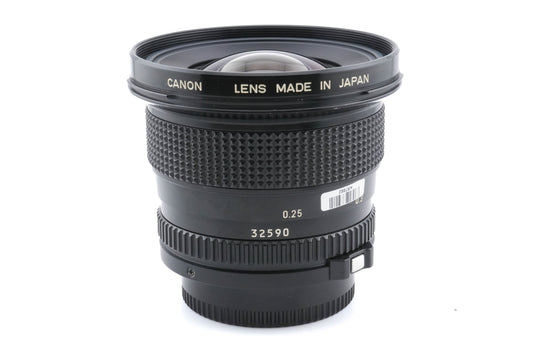 Manual focus wide-angle lens made for FD-mount 35mm SLRs introduced by Canon. It uses the newer style FDn bayonet mount. Metal & plastic body available in black.