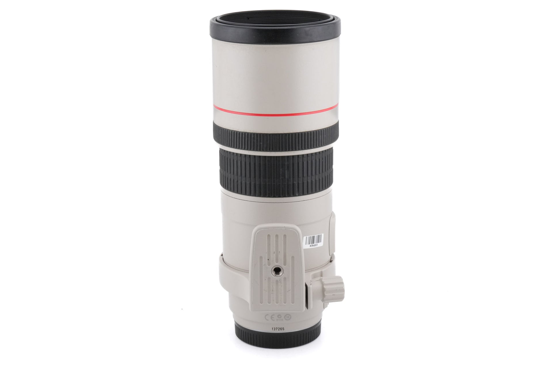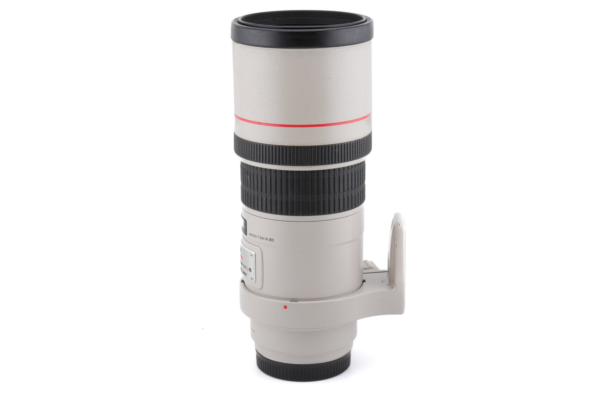 Autofocus telephoto lens made for EF mount SLRs by Canon. It's part of their L series of professional lenses. This lens has an image stabilizer (IS) and uses an ultrasonic focusing motor (USM) for autofocus. Plastic/metal body available in beige.