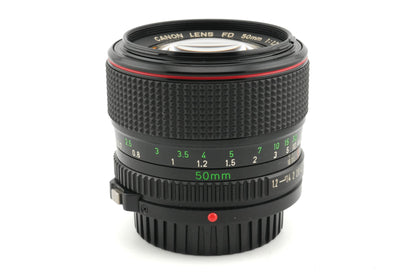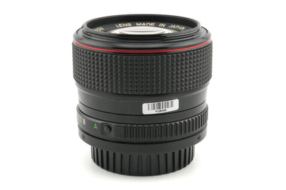Manual focus standard lens made for FD mount SLRs by Canon in 1980. Pretty fast. Metal body available in black.