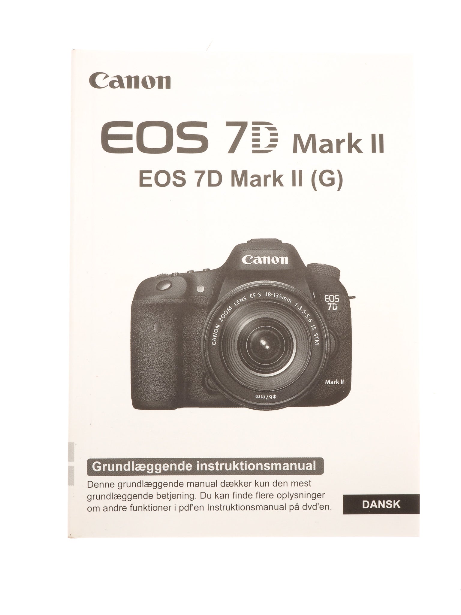 Instruction manual for Canon EOS 7D Mark II and its (G) variant cameras. Paper booklet.