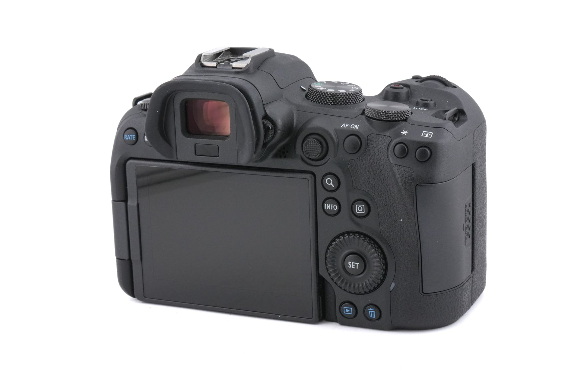 Autofocus RF-mount mirrorless camera released by Canon in 2020. This was the prosumer/video-oriented cousin of the EOS R5, with a lower resolution sensor. Metal body available in black.