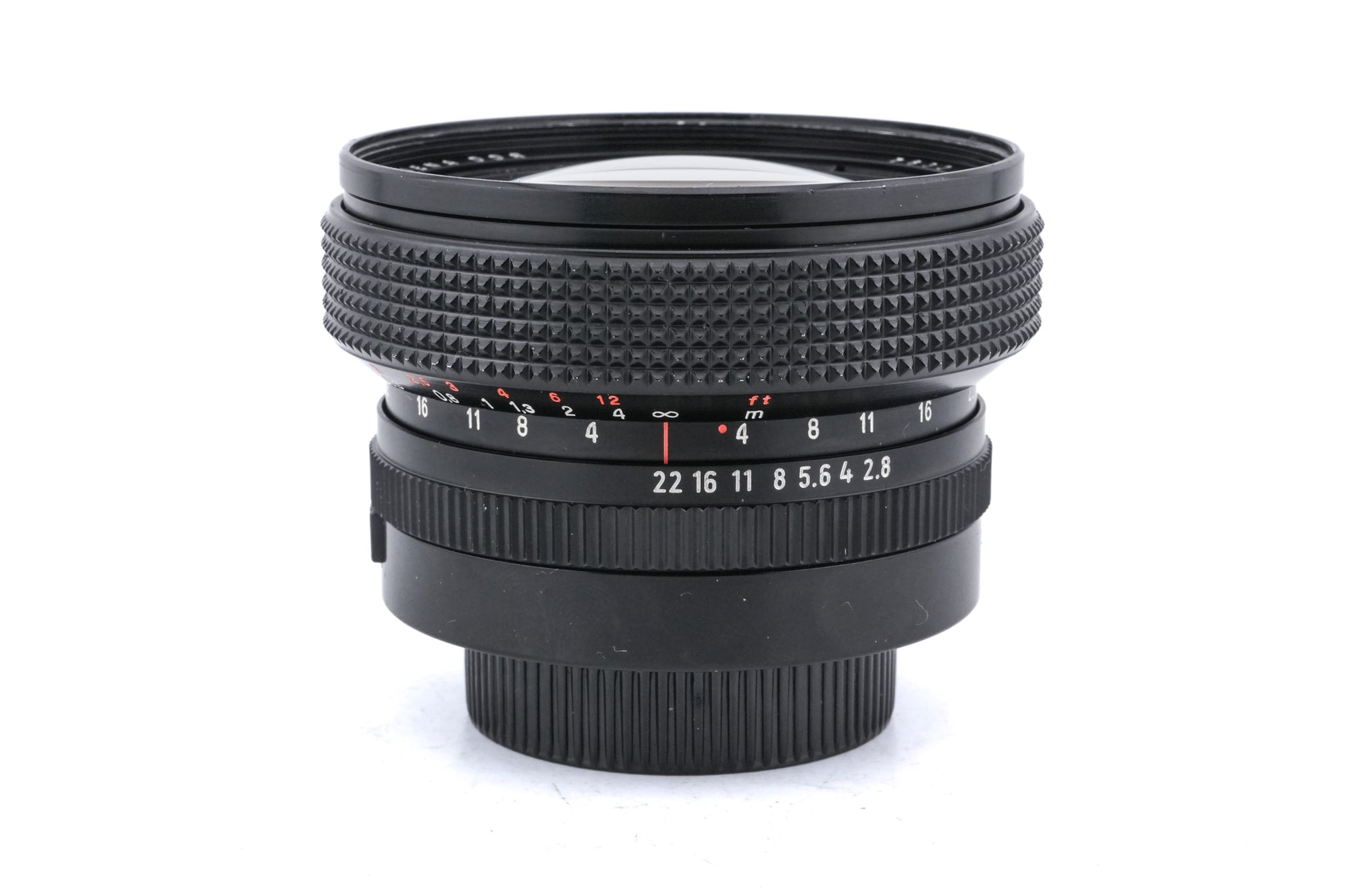 Manual focus wide angle lens made for M42 35mm SLR camera introduced by Carl Zeiss. Metal body available in black.