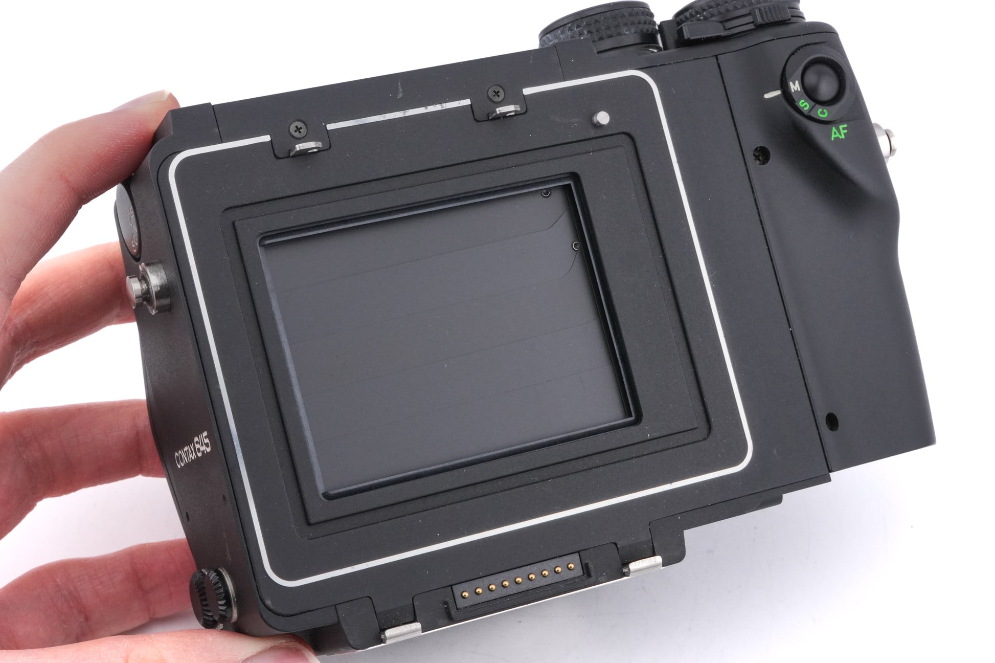 Autofocus 645 mount 120 SLR released by Contax/Kyocera in 1999. Plastic/metal available in black.