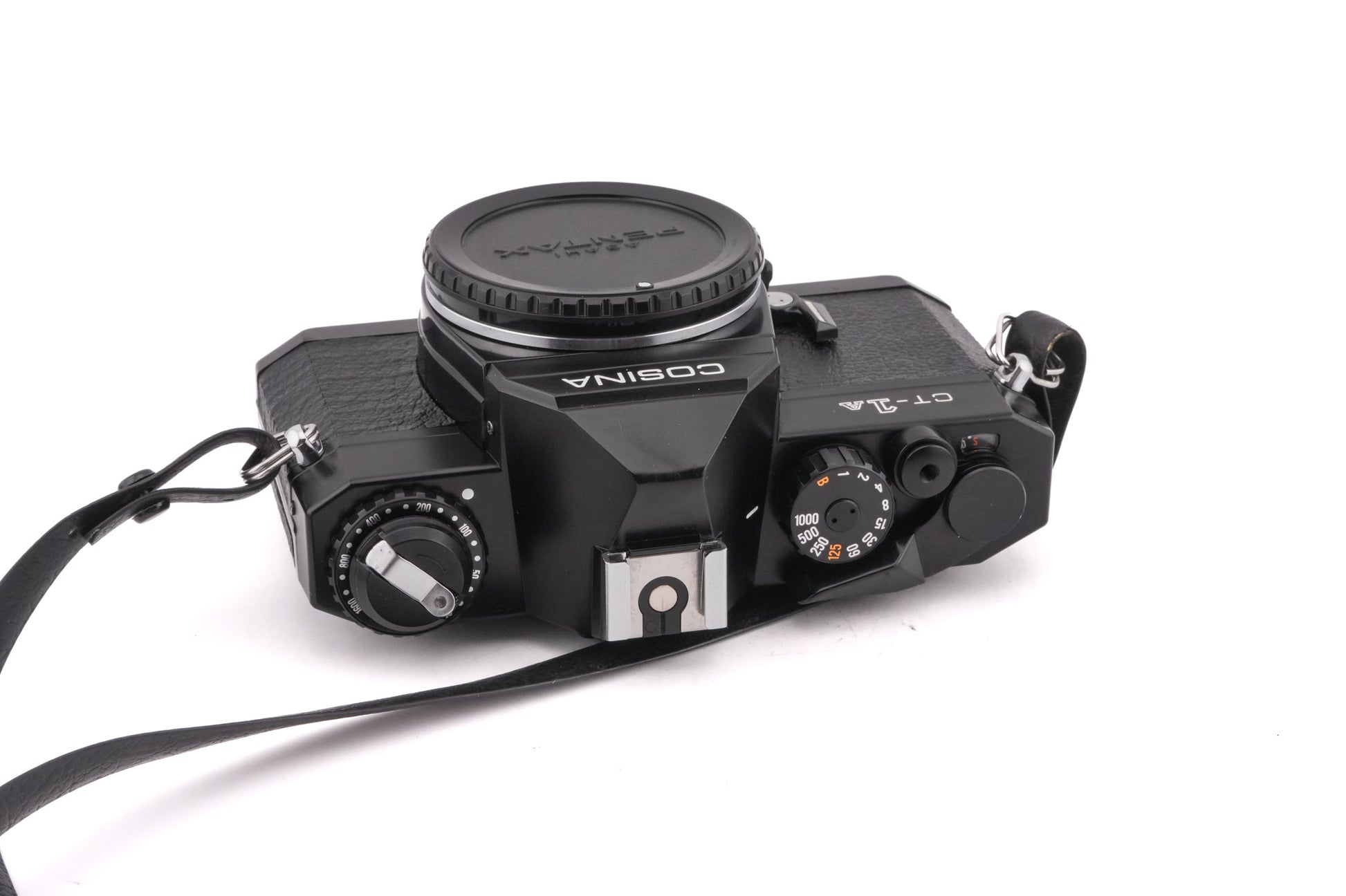 Manual focus 35mm K-mount SLR camera made by Cosina. Plastic body available in black.