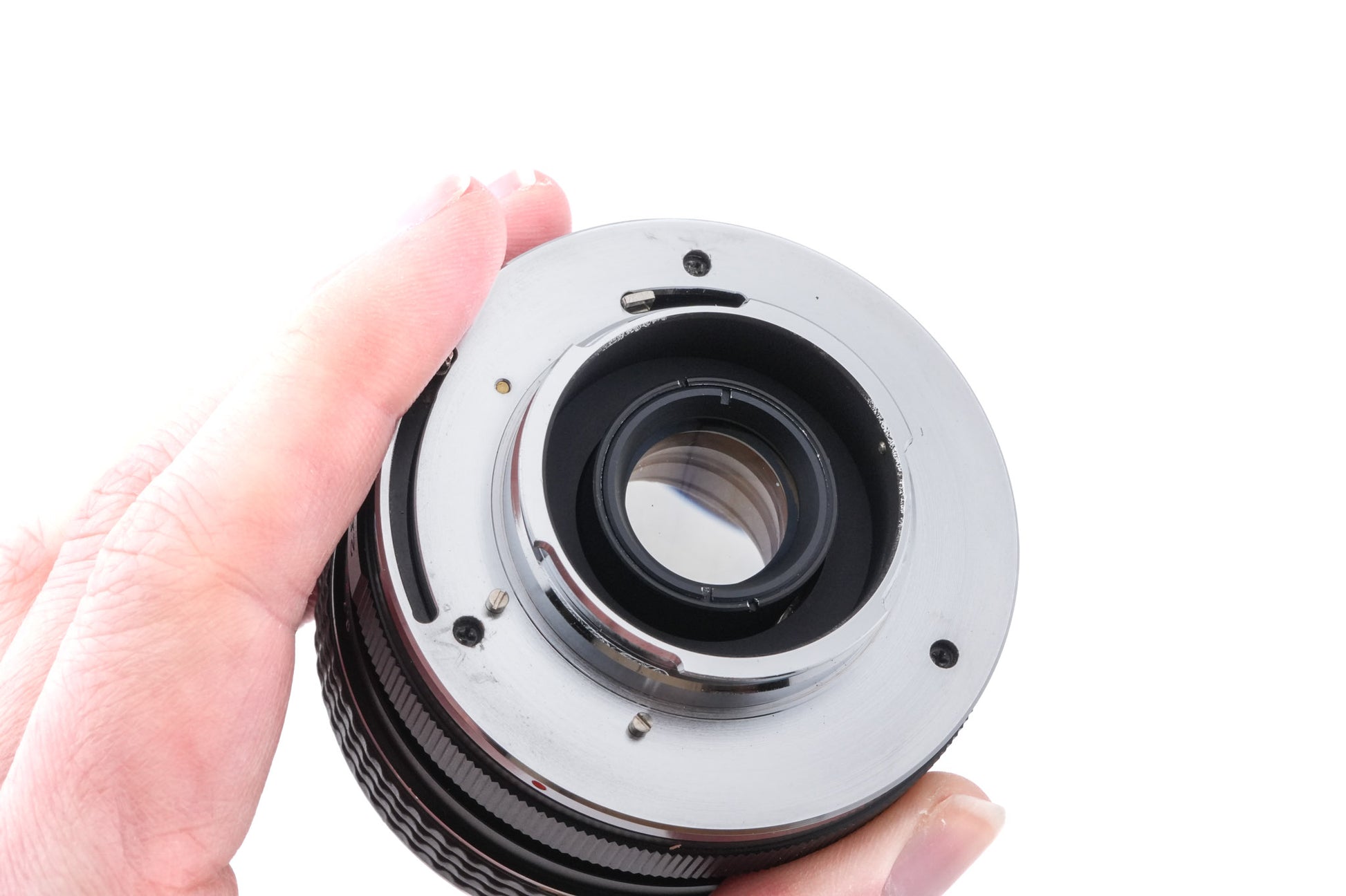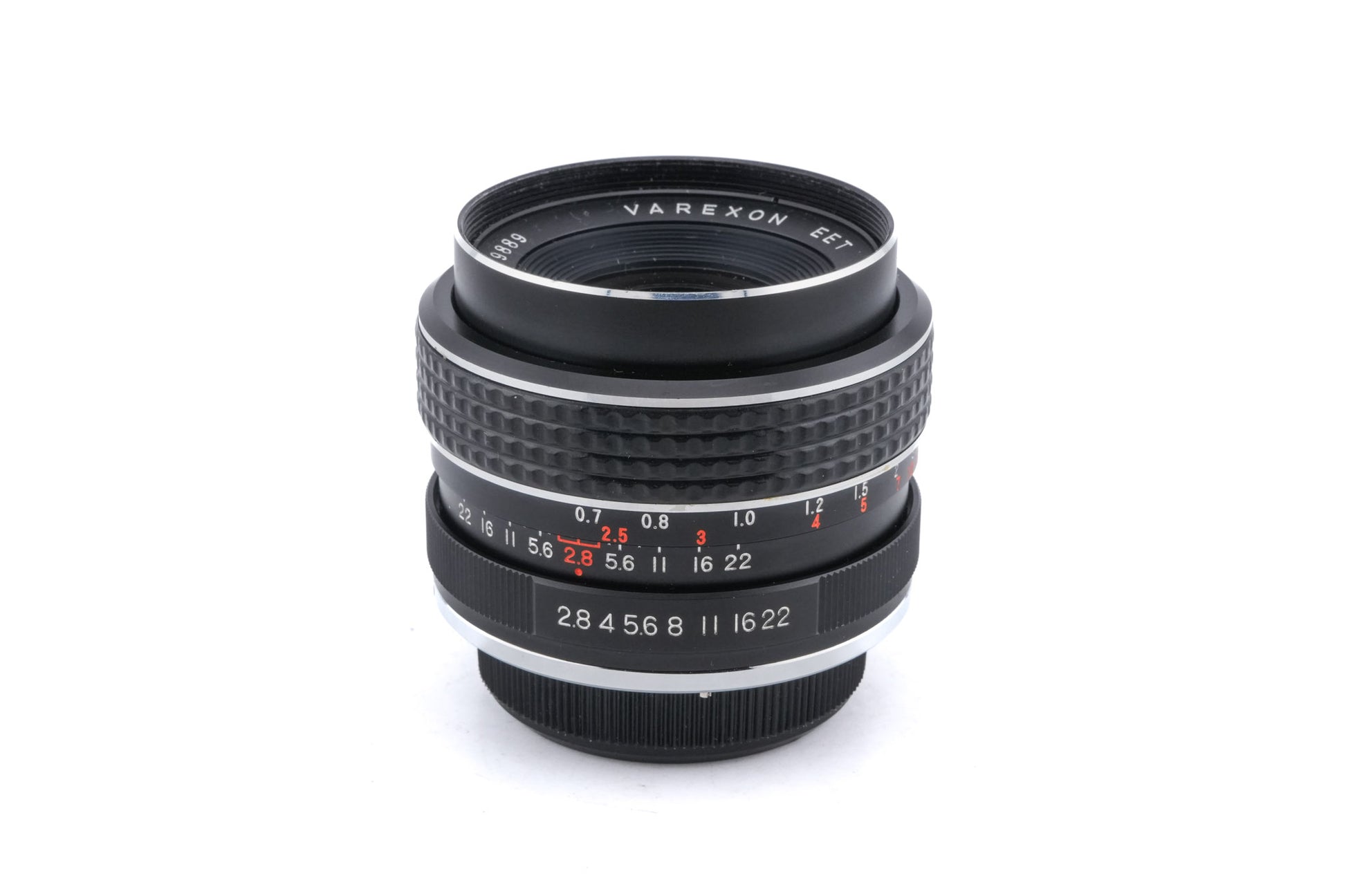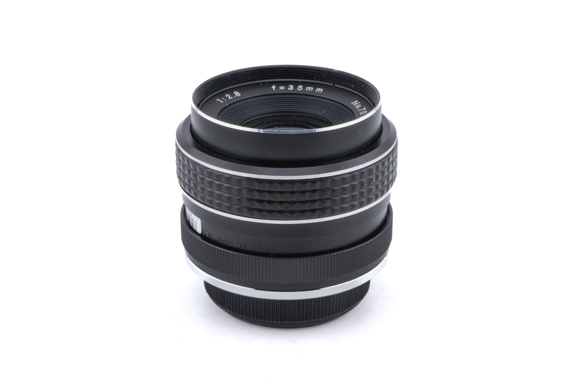 Manual focus semi-wide-angle lens for Topcon/Exacta mount SLR cameras made by Exakta. Metal body available in black.