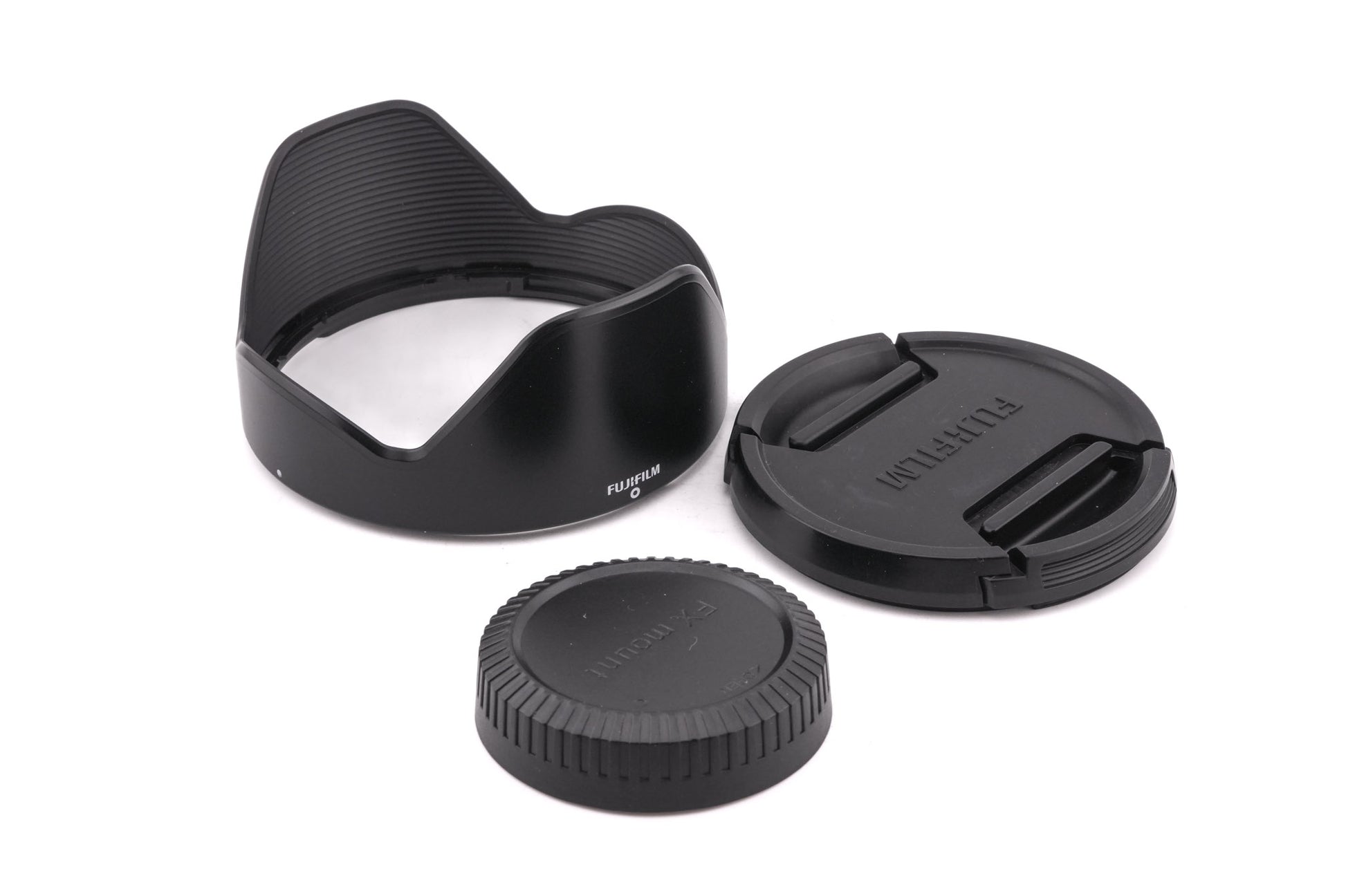 Autofocus zoom lens made for X-mount digital mirrorless cameras by Fujifilm. It is designed for APS-C-sized sensors and gives the equivalent field of view to a 24-120mm lens on full frame/35mm. The body is weather-resistant (WR), has a dedicated aperture ring (R), and features image stabilization (OIS). Metal and plastic body available in black.