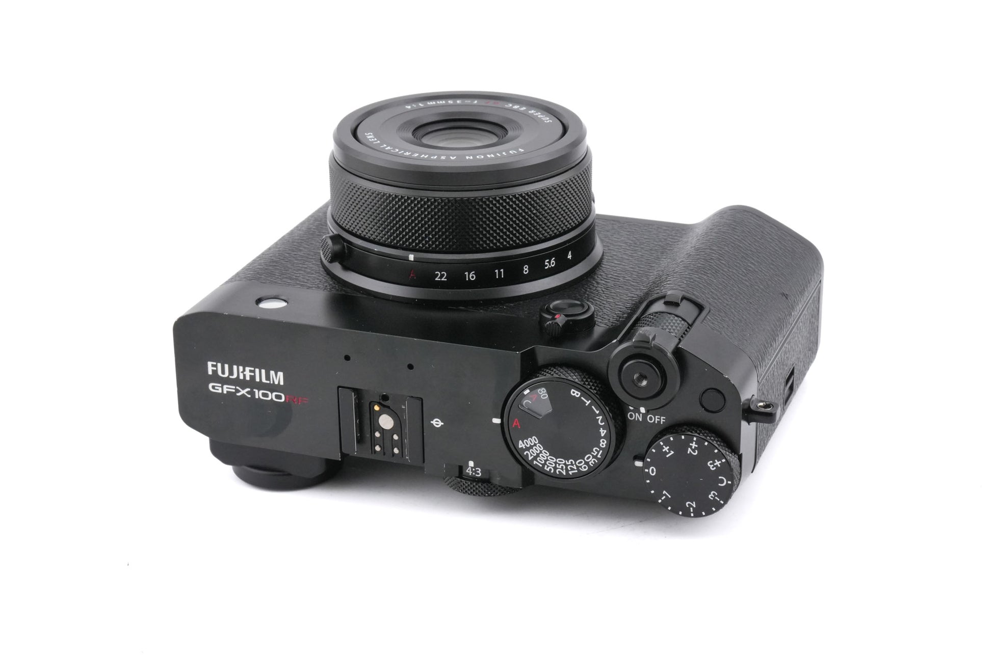 Autofocus rangefinder-style compact camera introduced by Fujifilm in 2025. Fujifilm's first compact camera with a GFX medium format sensor. It has a 28mm equivalent focal length, a 3.15" rear tilting LCD, and records 3840 x 2160, 30p, 8-bit, H.264 video. Metal and plastic body available in black and silver.