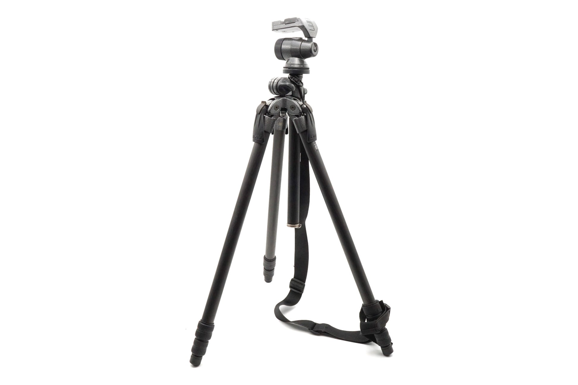 Tripod made by Gitzo. Carbon fiber body available in gray.