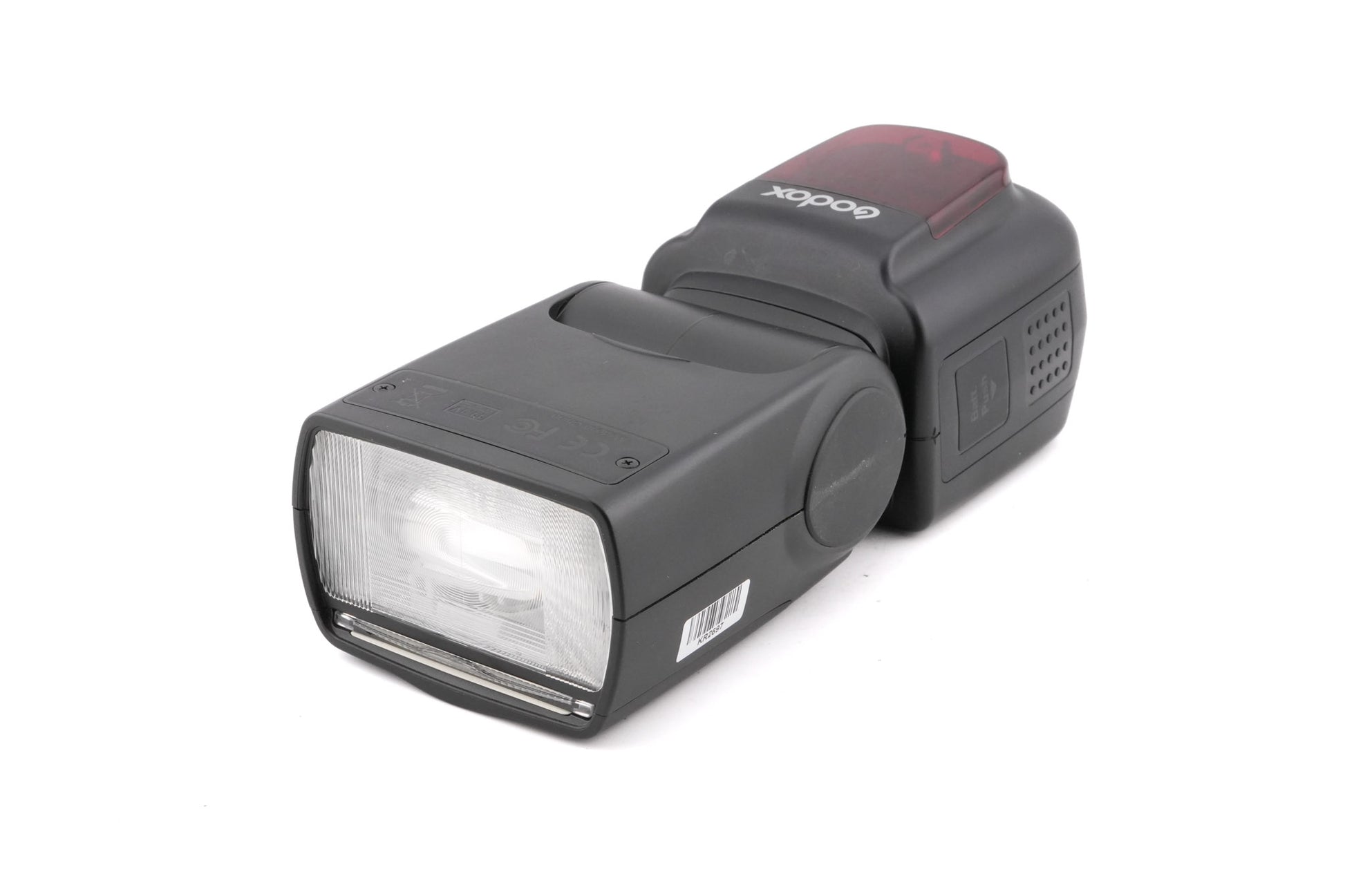 Flash made by Godox. Zoom range is from 24 to 105mm. Plastic body available in black.