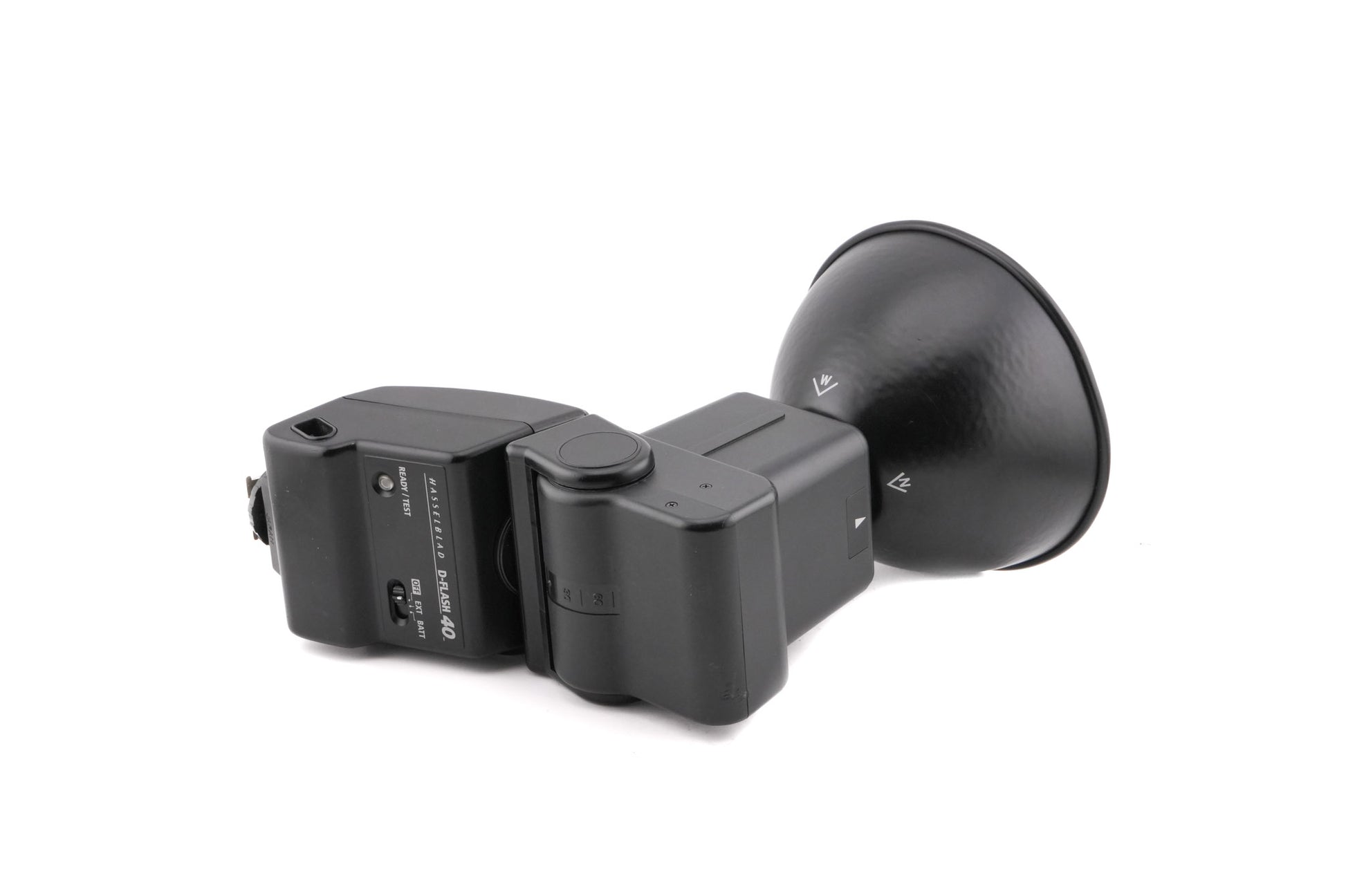 Flash made for Hasselblad V-system cameras introduced by Hasselblad. It is made specifically for cameras with TTL/OTF flash control. Metal and plastic body available in black.