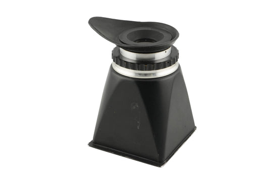 Magnifying hood made by Hasselblad for V series cameras. Its older product code was TIIHC. It provides a 2.5X magnification of the focusing screen and eyesight correction from +3.5 to -2.5 diopters. Metal body available in black.