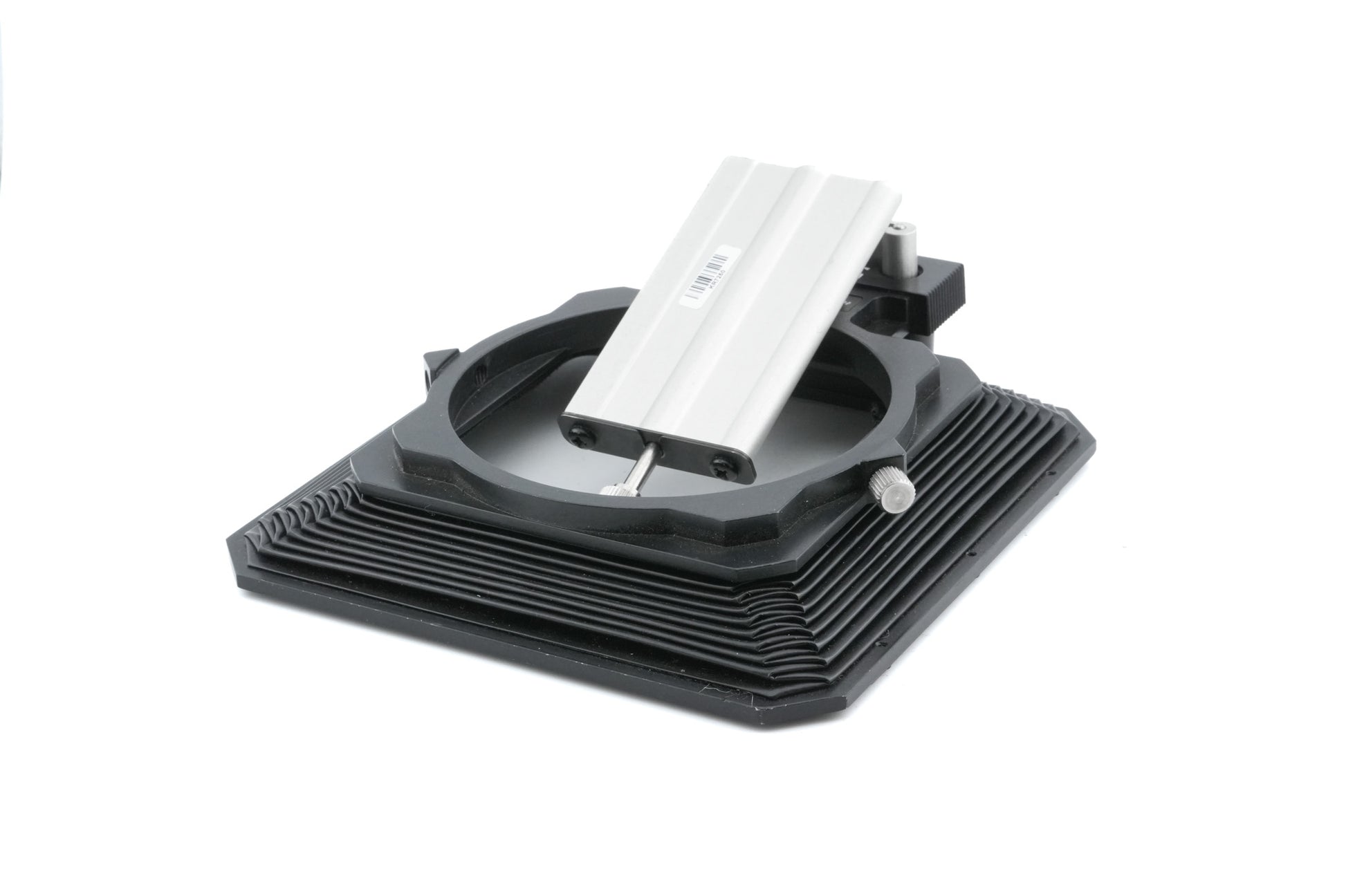 The second generation bellows lens hood made for V-system CF lenses introduced by Hasselblad. The rails fold for easier and more efficient storage & transportation. The shade takes a different set of adapter rings. None of these adapter rings are included with the shade originally. Metal body available in black.