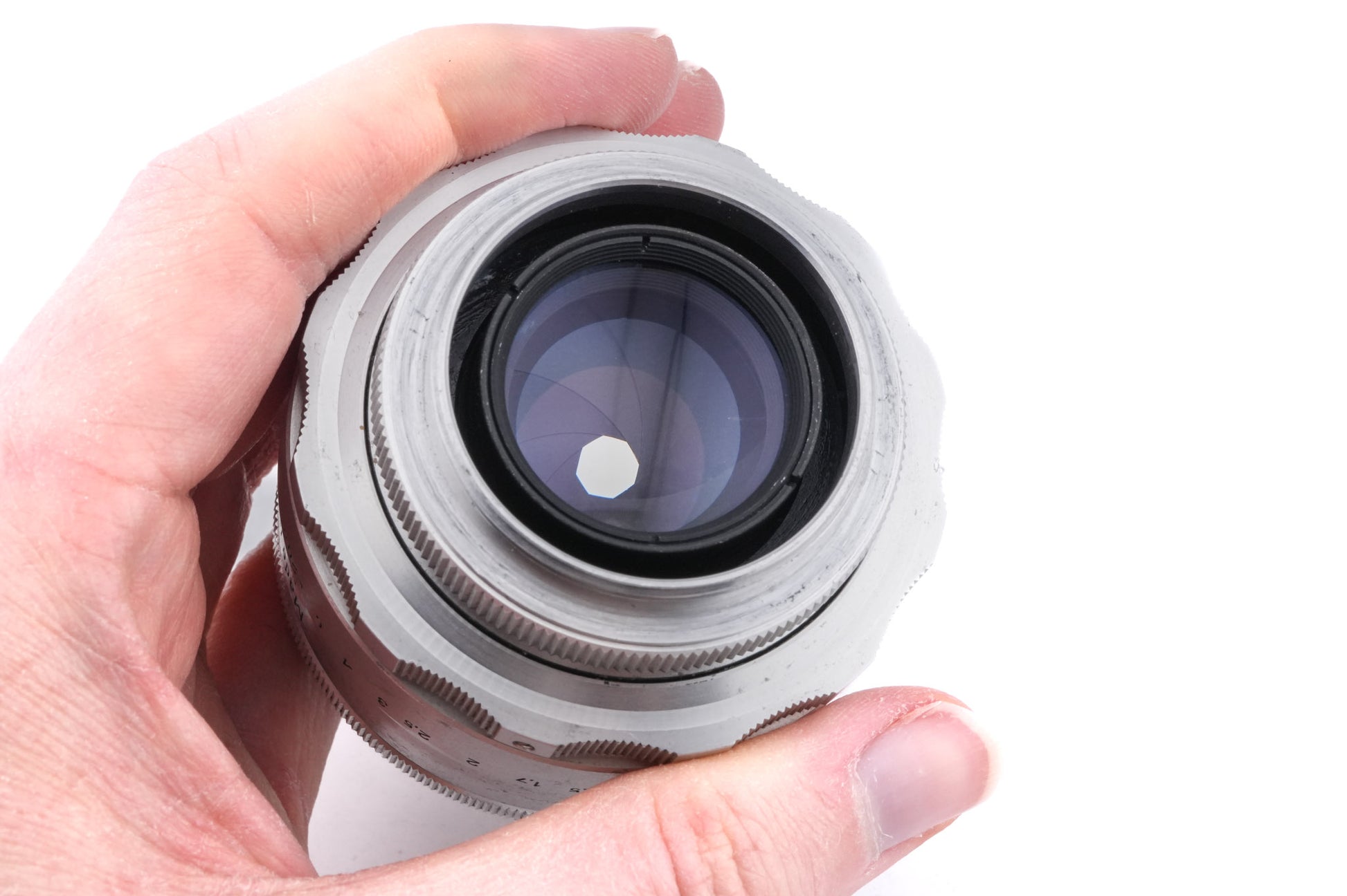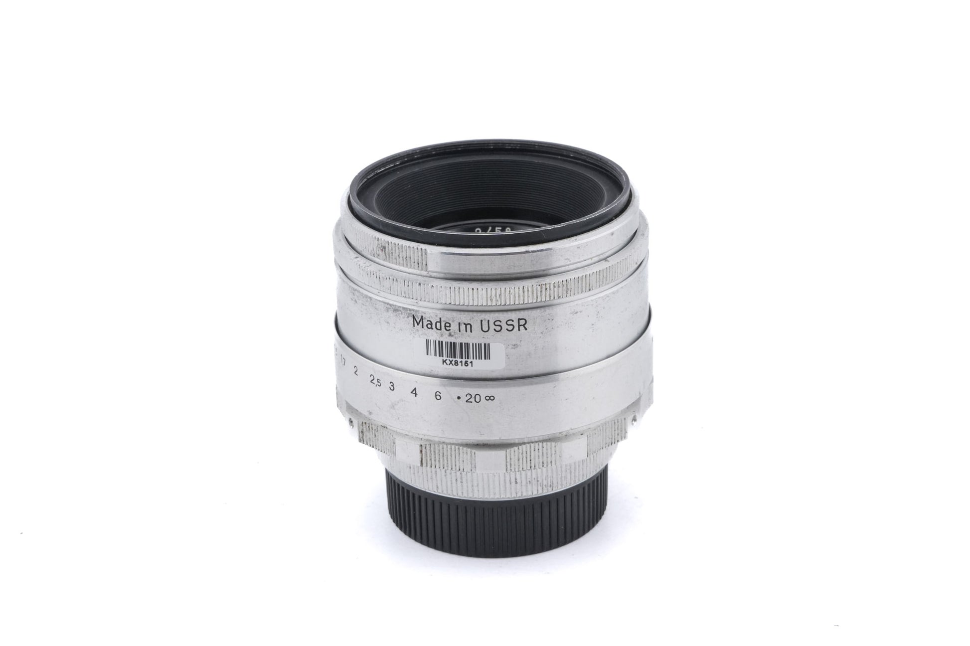 Manual focus normal lens made for M39 mount SLR cameras in the Soviet Union. It's a copy of the Carl Zeiss Jena 58mm f2 Biotar lens design. Metal body available in black and silver.