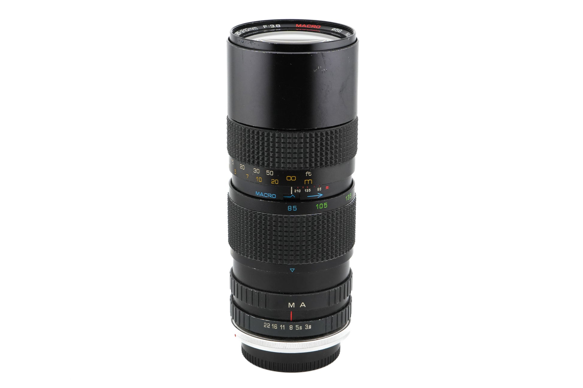 Manual focus telephoto zoom lens for Canon FD-mount 35mm SLR's made by Helios. Metal construction available in black.