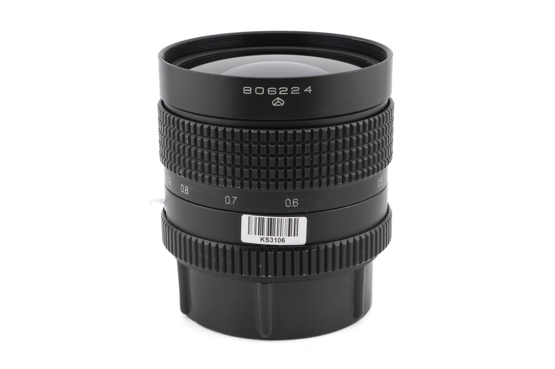 Manual focus wide angle lens made for Salyut mount medium format cameras by Kiev. Metal body available in black.
