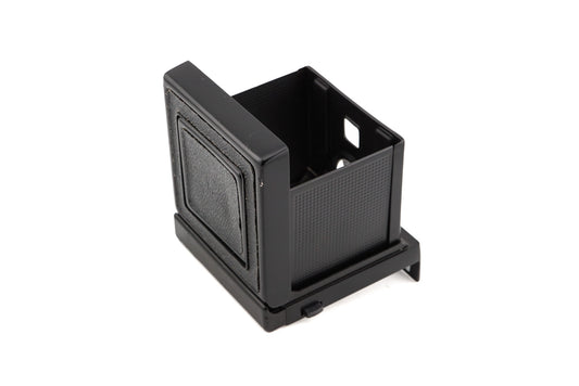Waist level viewfinder for Kiev 60 cameras. It has three viewings: Waist level and two different eye level views. Metal body available in black.