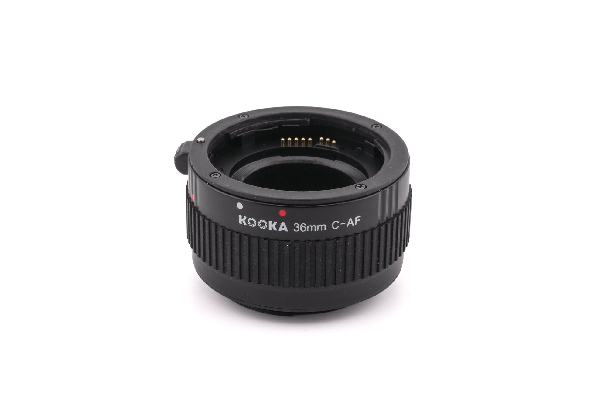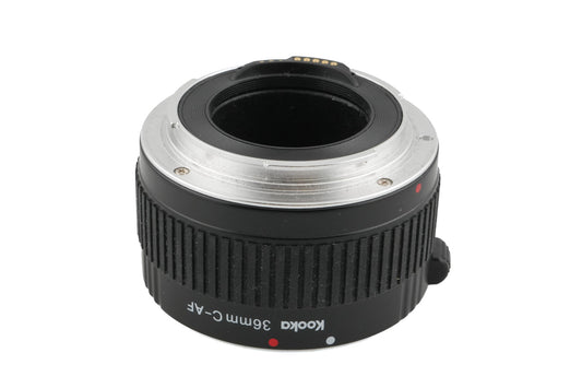 Autofocus 36mm extension tube made for EF-mount (D)SLR cameras and lenses introduced by Kooka. Plastic body available in black.