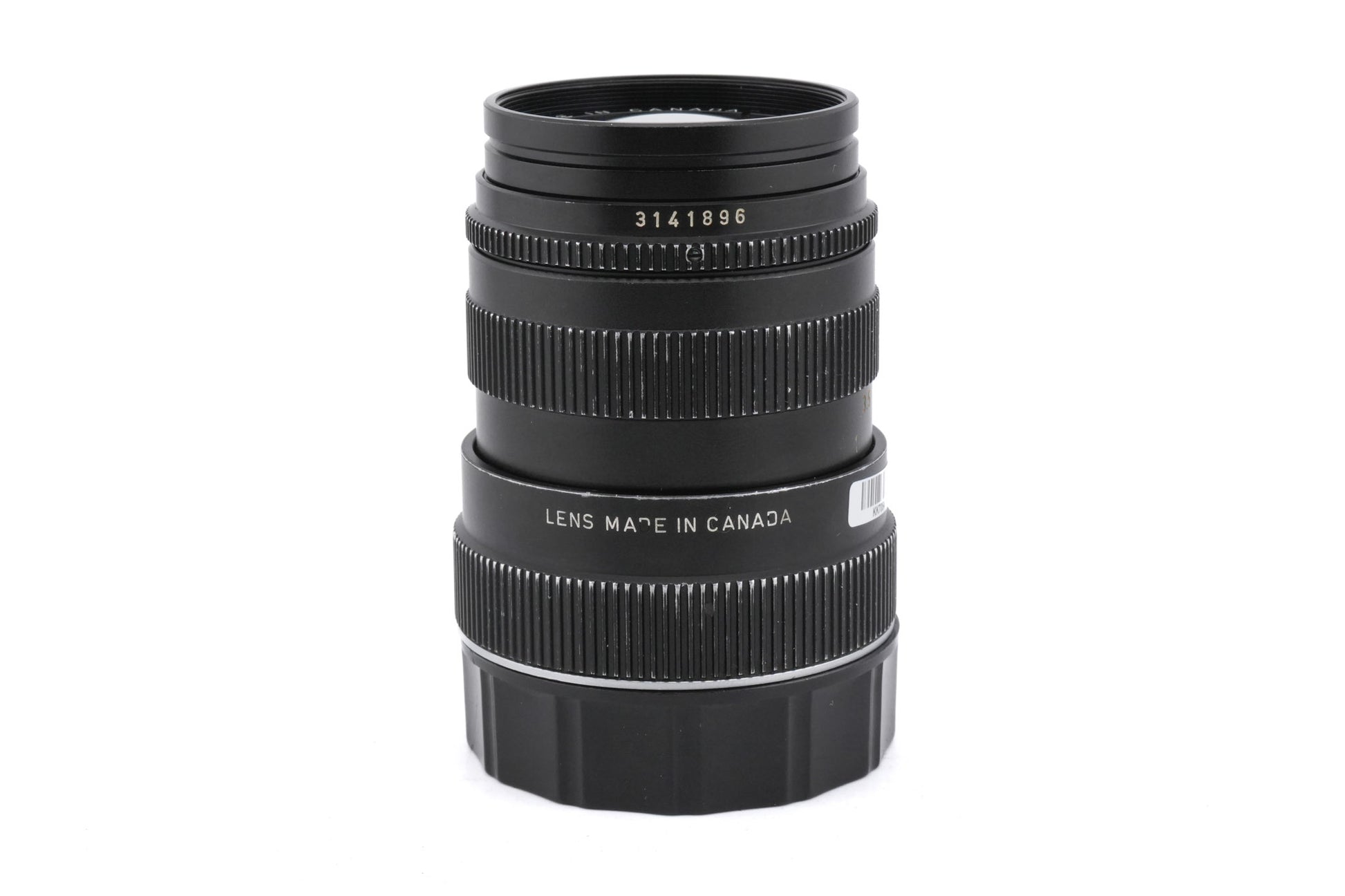 Manual focus telephoto lens made for M-mount rangefinder cameras introduced by Leica in 1973. This is an improved version of the earlier 90mm f2.8 Tele-Elmarit from 1964. The optical formula changed from a 5 to a 4-element design. The overall design of the lens had also changed, now with a slimmer profile and a fine knurled focusing ring. The lens was introduced at the same time as the 135mm focal length was discontinued, and was therefore developed with a 1.5x extender in mind to provide a compact 135mm lens. It is sometimes referred to as the "Thin" Tele-Elmarit. NOTE: It uses the same code as the earlier version. Metal body available in black (11800).