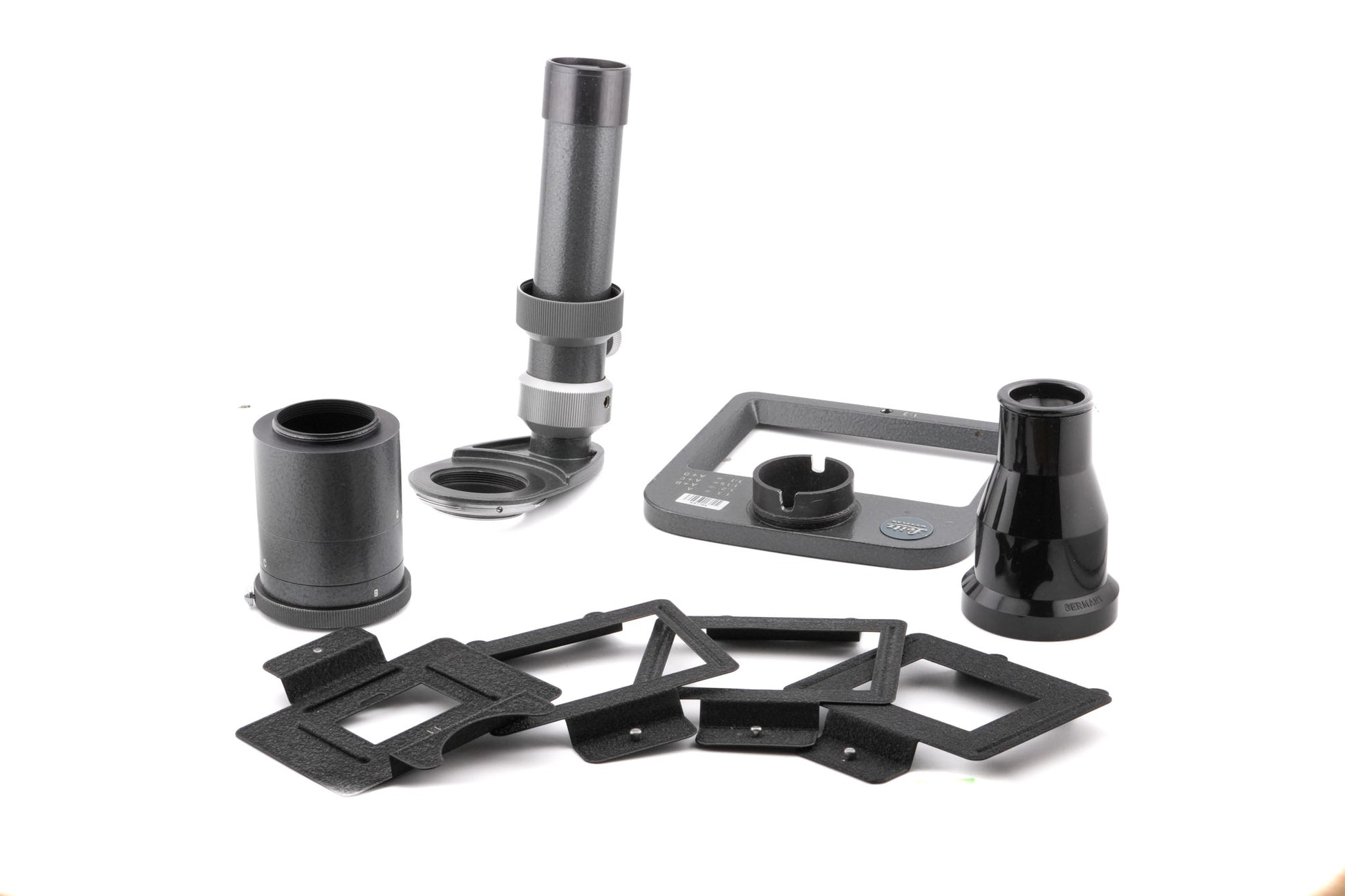 Copy Stand (BEOON / 16511) made by Leica. Small copying stand for scales of reproduction of 1:1 to 1:3. Designed for Leica M3, it can be used with Visoflex and many cameras with the equivalent of a 35 or 50mm lens. Metal body available in dark grey.