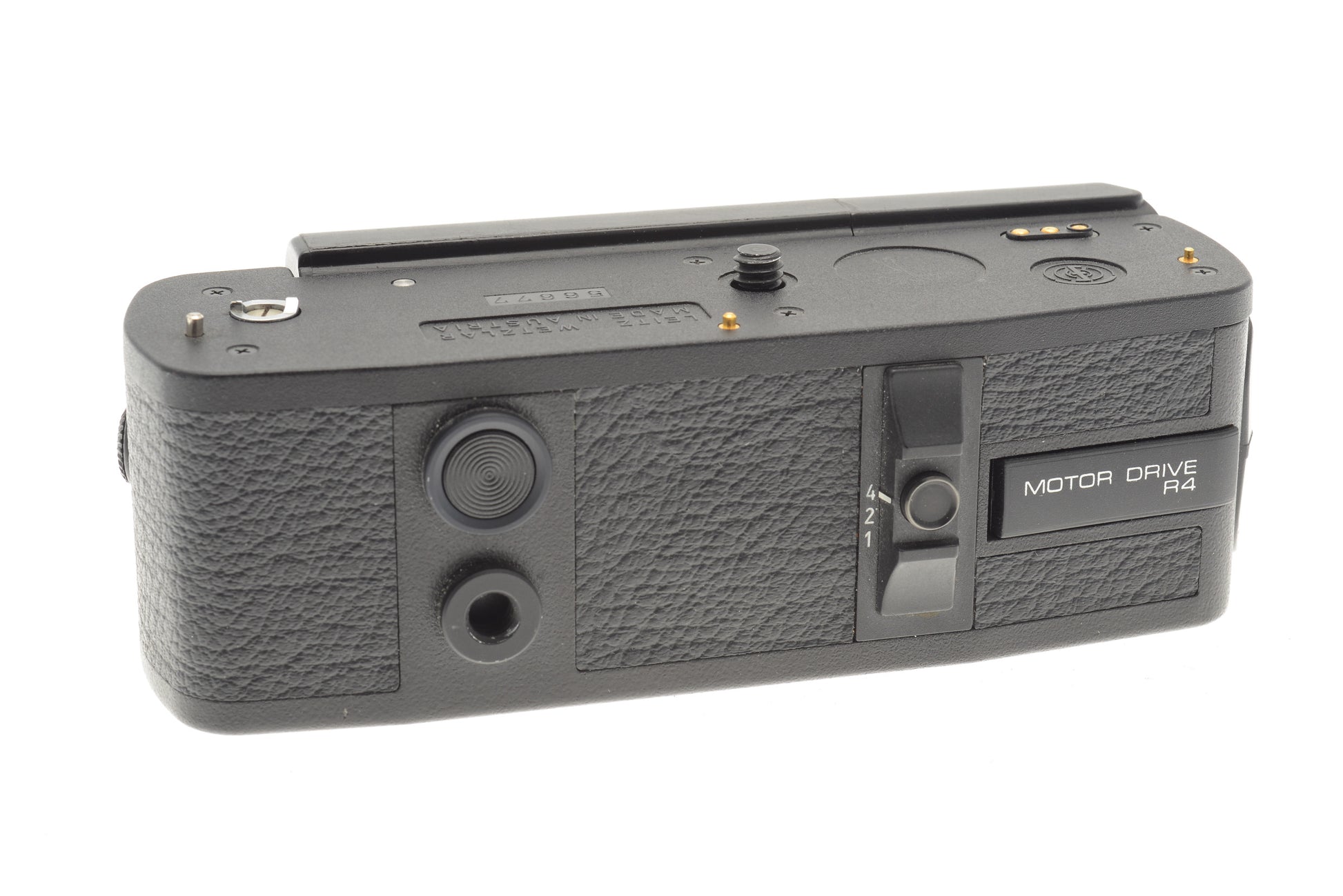 Motor drive deigned for the R4 and R4s cameras. Capable of single-frame and continuous exposures with automatic film transport and shutter cocking.