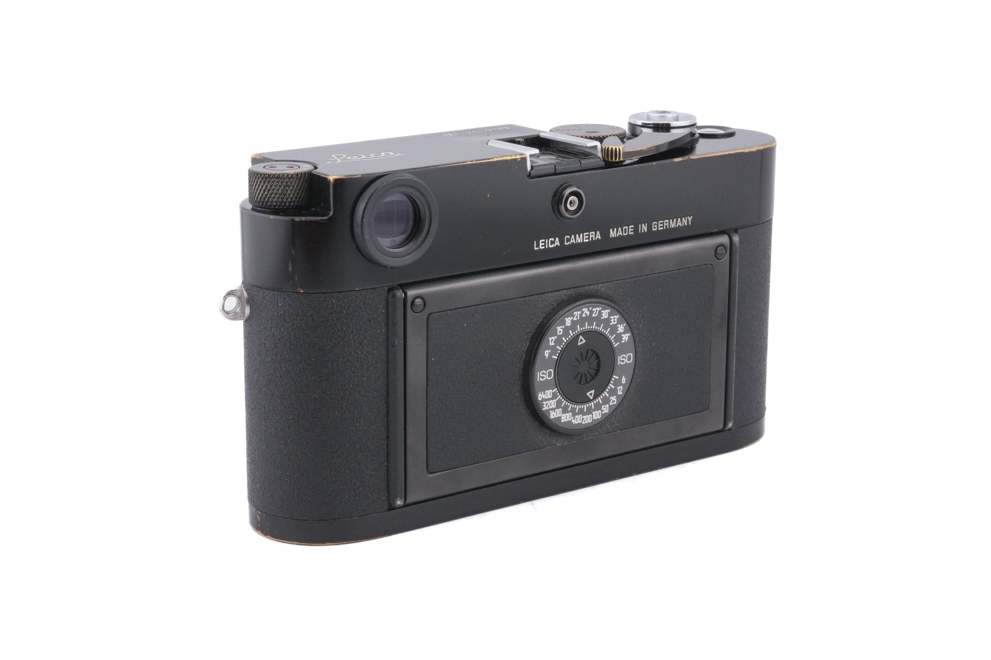 Manual focus M-mount 35mm rangefinder camera introduced by Leica in 2003. This is a new modern version of the original MP from 1956. This time, the “MP” stands for “Mechanical Perfection”. It features fully mechanical controls akin to the M3 and a built-in TTL exposure meter similar to that on the M6. It is compatible with the LEICAVIT-M rapid film advancer accessory. Leica offered these cameras "à la carte" for a period, allowing customization of colors, features, finders, and materials. The available viewfinder magnifications were: 0.58x, 0.72x, and 0.85x. This is the 0.72x version with frame lines for 28/90mm, 35/135mm, and 50/75mm. Metal body available in black paint (10302).
